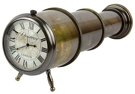 - Desk clock housed in an antique brass telescope.