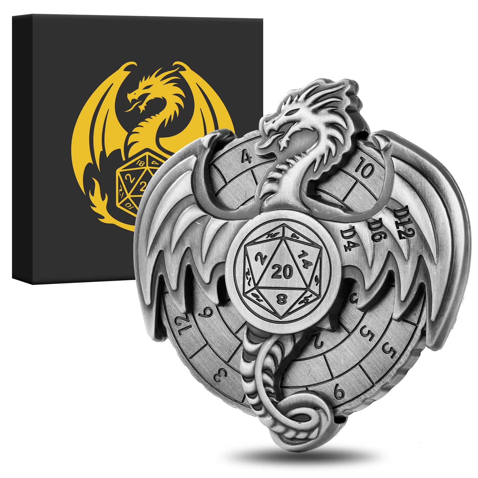 - VERSATILE ACCESSORIES: The spinner features artfully designed dragon patterns; different three points on each side, including D20, D10, D8, D12, D6 and D4