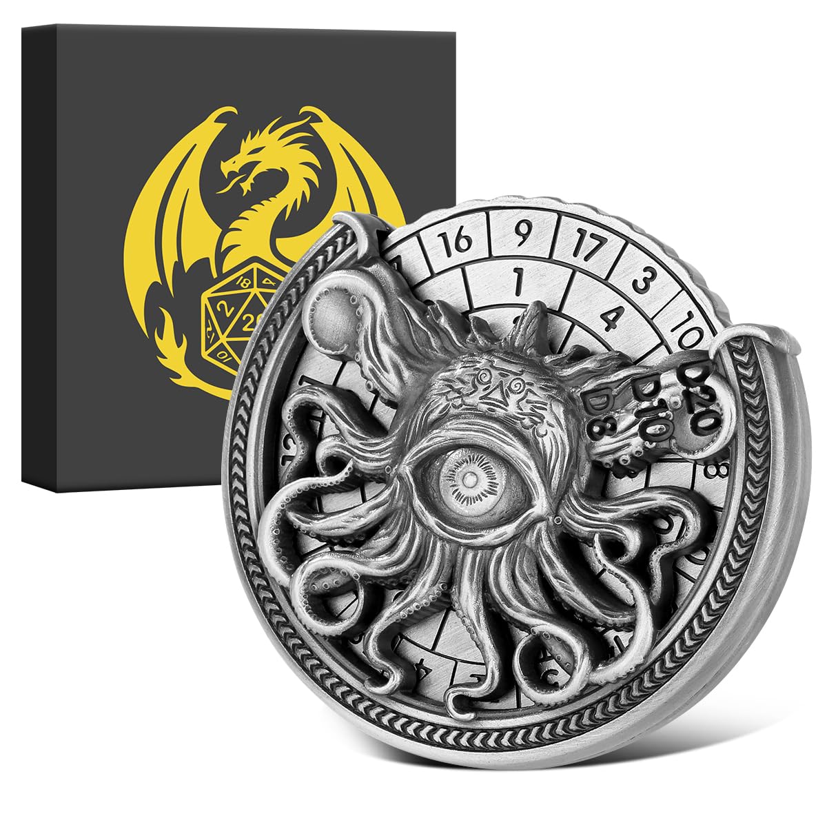 DND Wheel Spinner, 7-in-1 Cyclops Octopus Metal Dice With Dragon Logo Gift Box – Fingertip Gyro Roulette for Role Playing Board Game Accessories, Silver