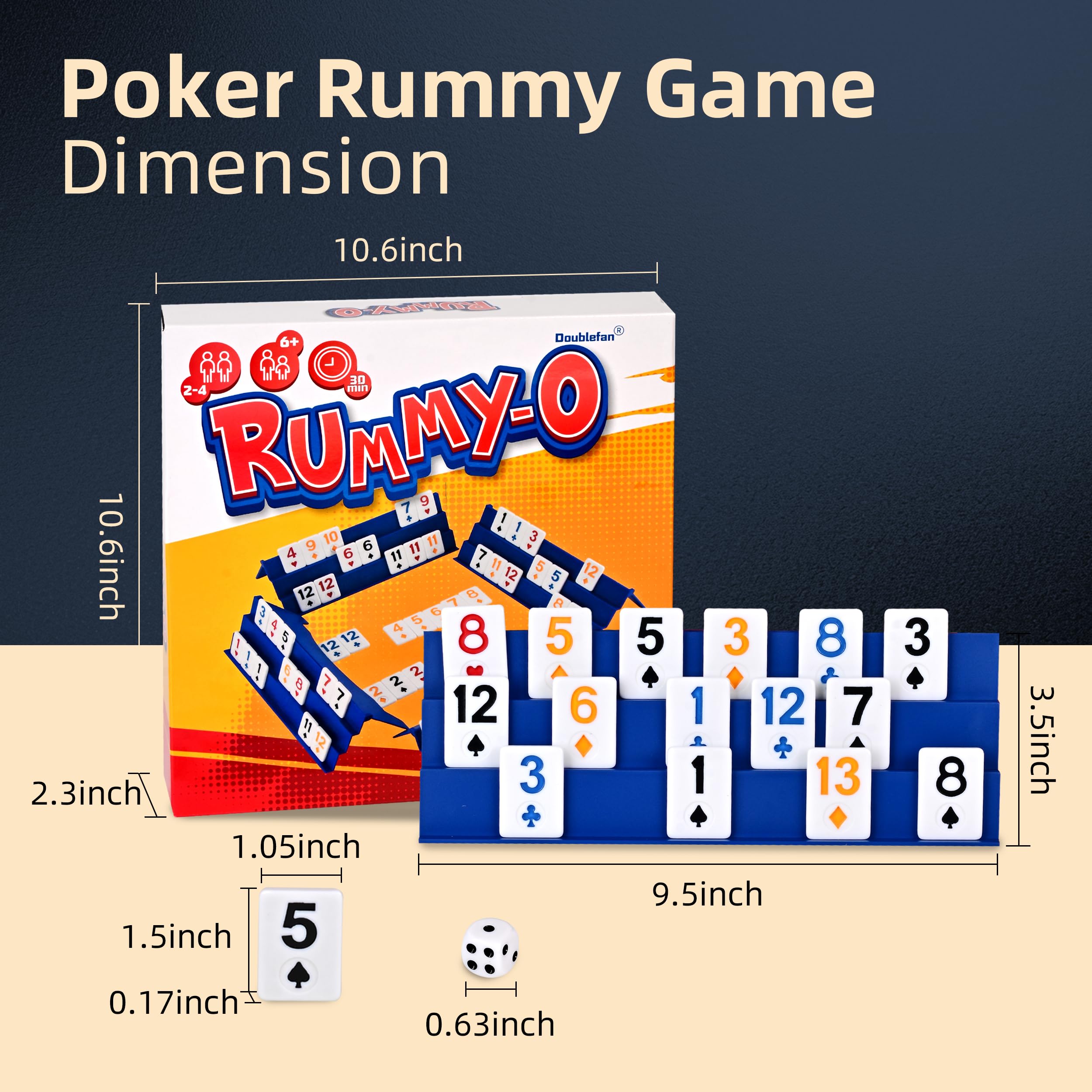 Doublefan Upgraded Rummy Game,Rummy-O with Color Unique Poker Playing Way,Rummy Cube Orginal Classic Board Game for Adult and Kids,106 Tiles, 4 Playing Rack, 1 Timing, 1 Dice (2-4 Players)