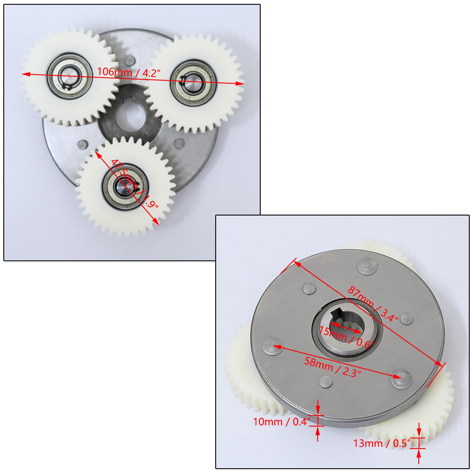 - The kit includes 3 36T nylon gears with bearings and an 88mm gear holder, which can be used to replace the solid metal gears of the Bafang motor