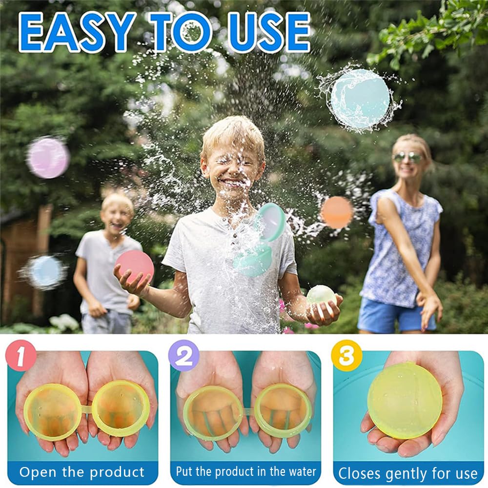 - Reusable Water Balls The biodegradable water balls are made of high quality silicone material, they are soft, safe. Splash balls have a very soft shell and as long as the water ball hits the target, it can spray. It will not harm children during water play. Reusable water bombs provide kids healthy water play outdoor kids.