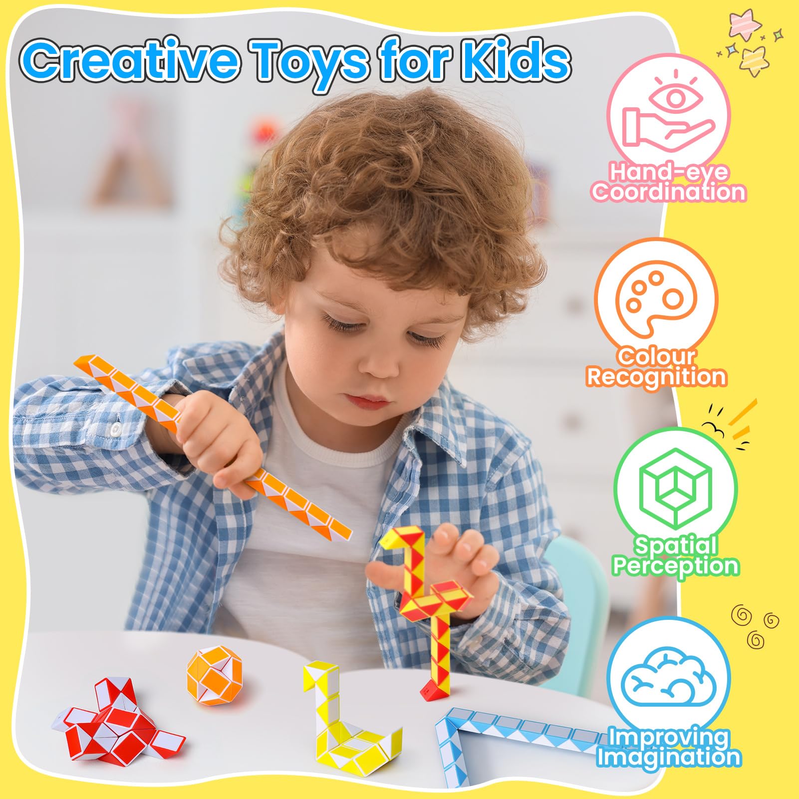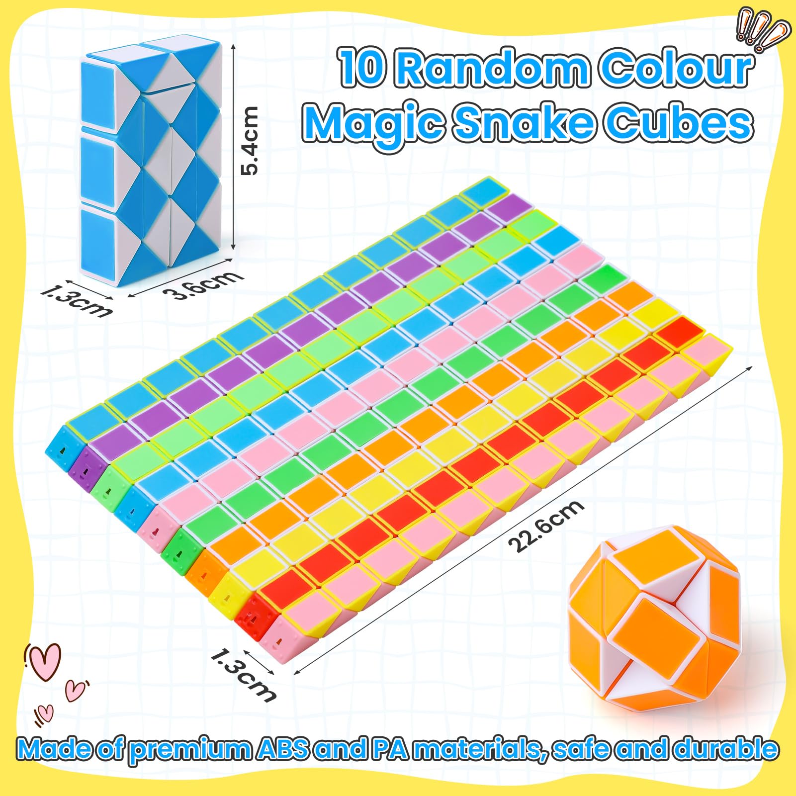 - MULTICOLOR AND MINI SIZE: ECHOCUBE 10-pack snake speed cube is an educational toy designed for children ages 3 and up. They are random colors and mini size, which is convenient to carry. With sturdy and stable construction, that they can be rotated flexibly without getting stuck.