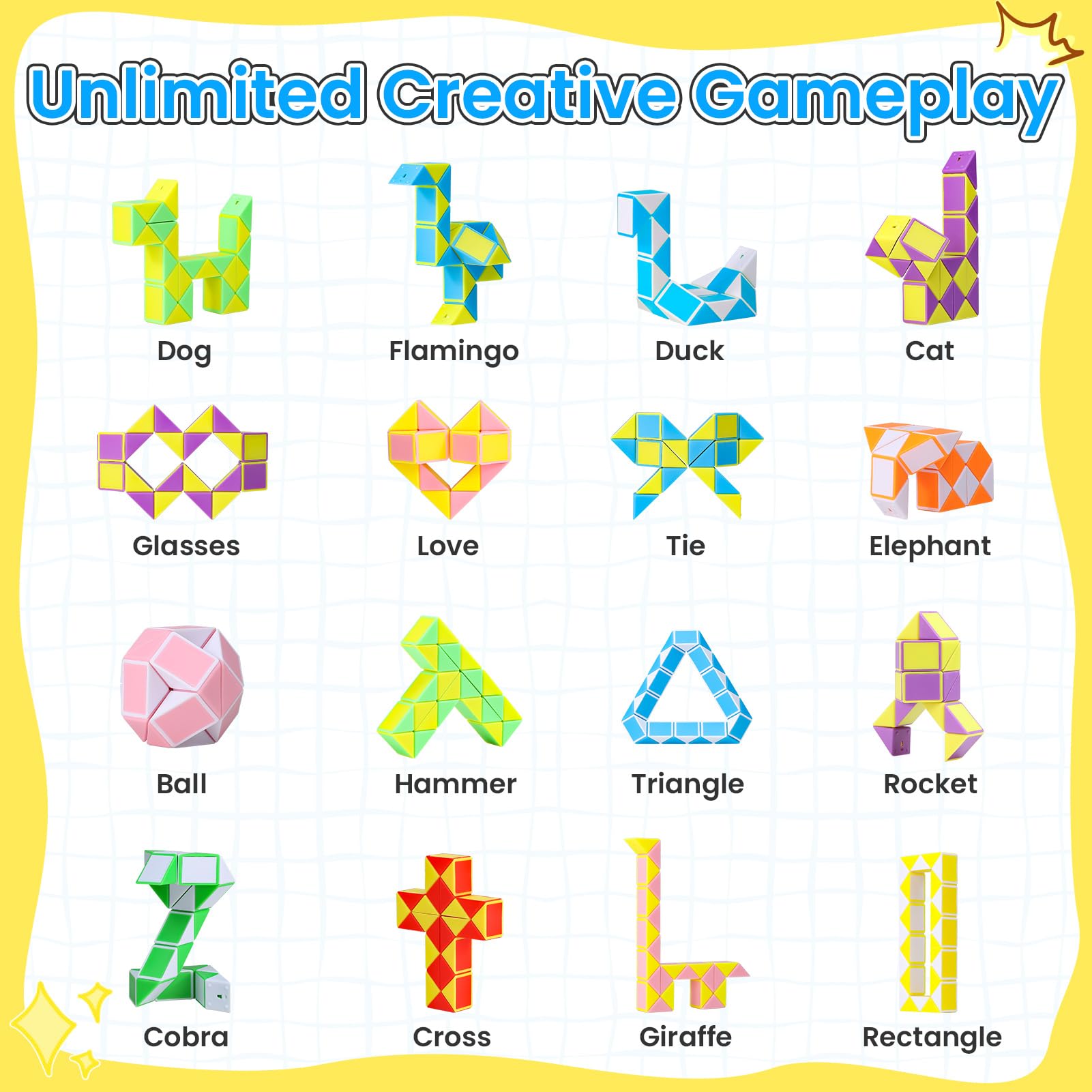 - INFINITE GAME PLAY: ECHOCUBE snake puzzle set can be turned into the shape of various animals and 3D puzzle patterns. It is a fun twist puzzle toy that helps to exercise logical thinking and handling skills.