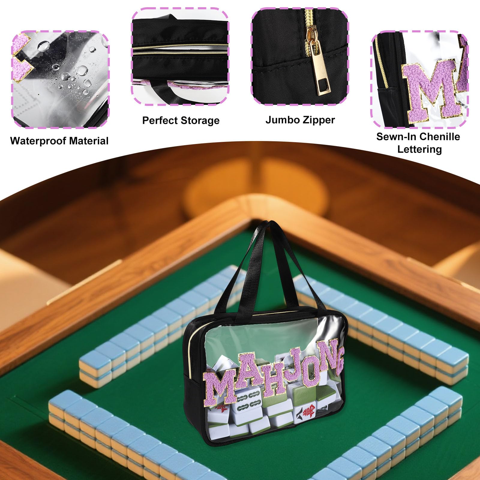 • Eye-Catching Patterns: There are chenille lettering patterns sewn on the empty mahjong carrying bag, which is eye-catching and stylish. Clear PVC material allow you to know what in the bag at a glance.