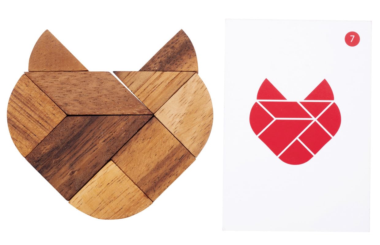 - Contents: 2 games with 9 wooden shapes. 60 cards with figures, rules of the game in several languages, a wooden box.