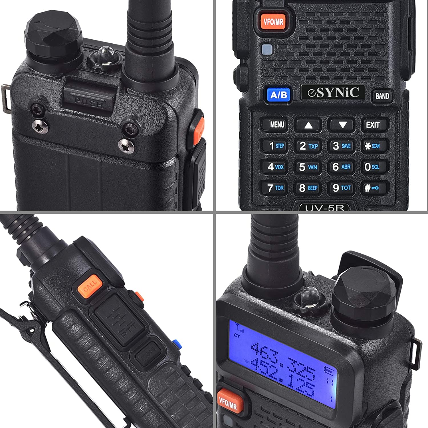 eSynic UV-5R Walkie Talkie Dual Band VHF/UHF with LED Display 128 Memory Channel with flashing Alarm and Radio Function Supports VOX for Construction Site Hotel Outdoor Adventure with USB Charge Base