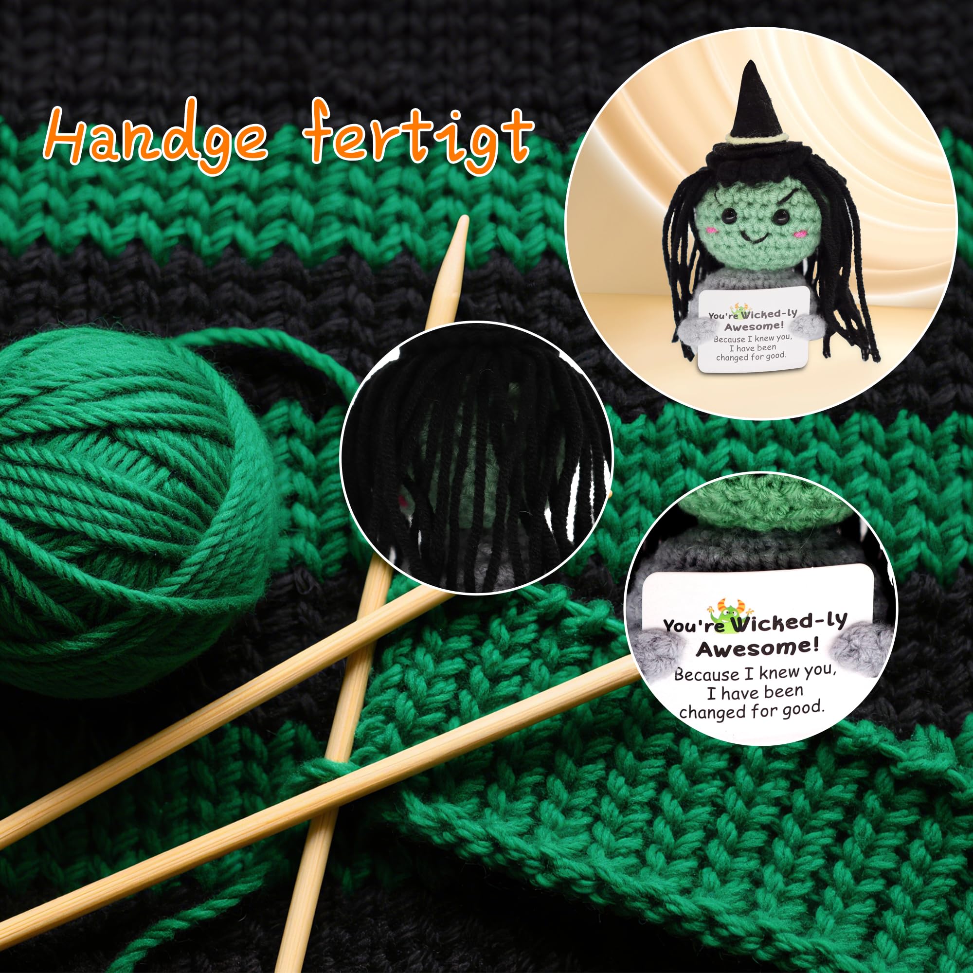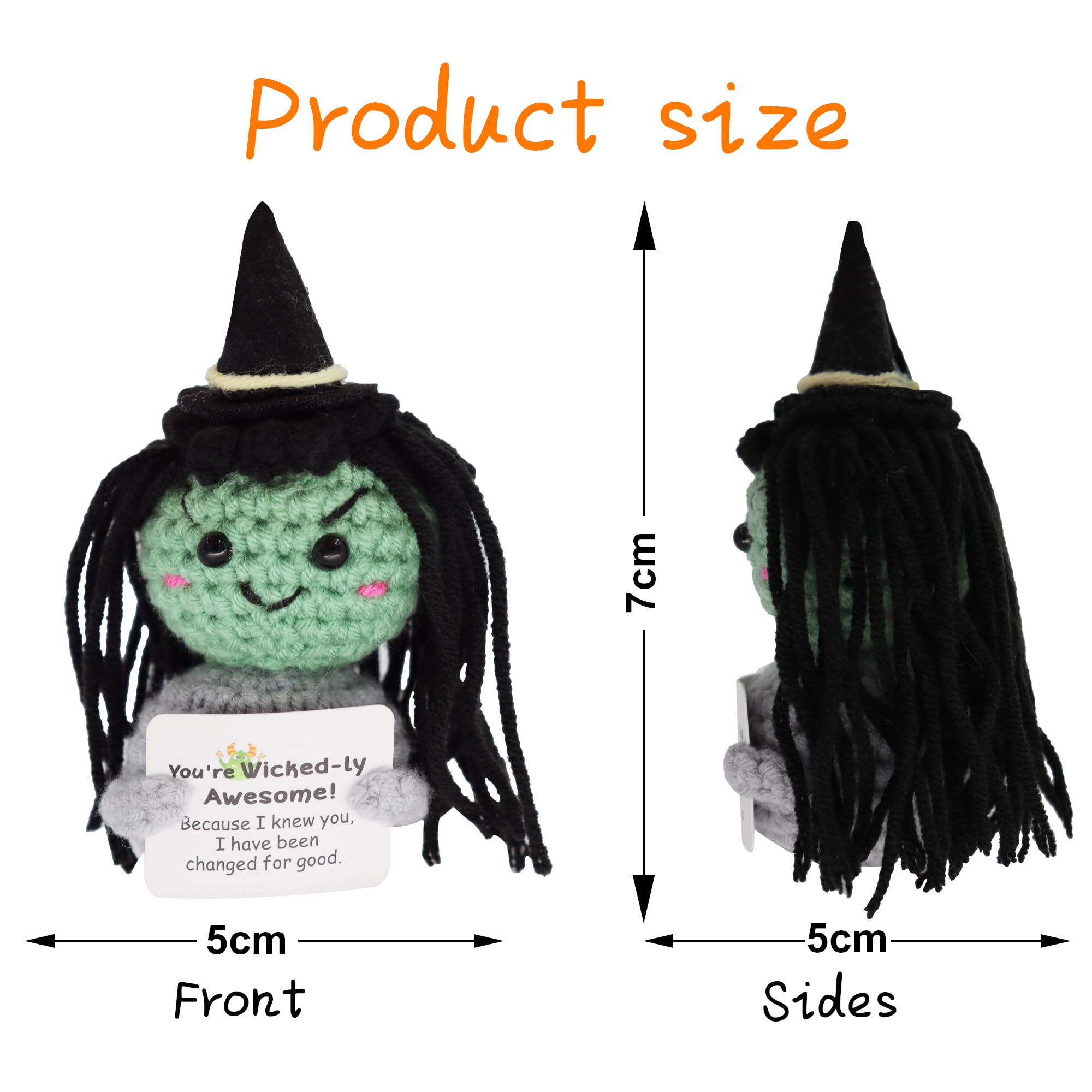 - Handmade: This small, hand-stitched dark doll is woven from wool and cotton thread and decorated with small cards with positive energy words. Soft and comfortable, delicate and elastic, it can effectively relieve stress.