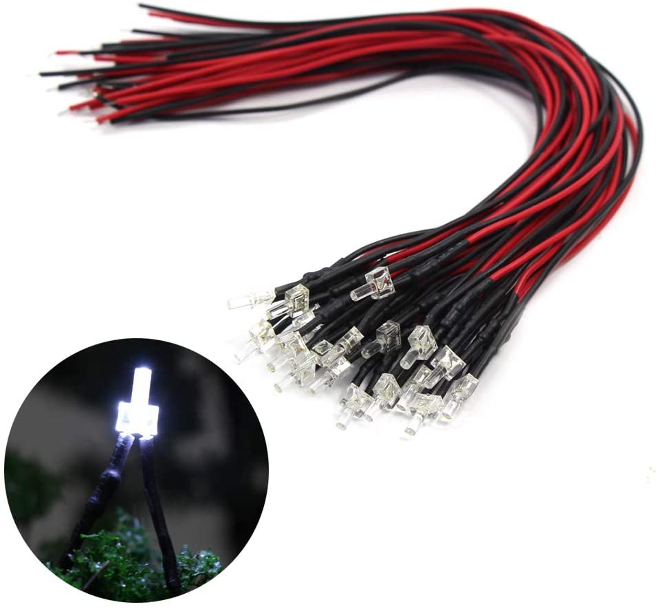 Evemodel L1220W 20pcs Pre Wired 2mm Bright White Led Lamp Light Set 12V ~ 18V