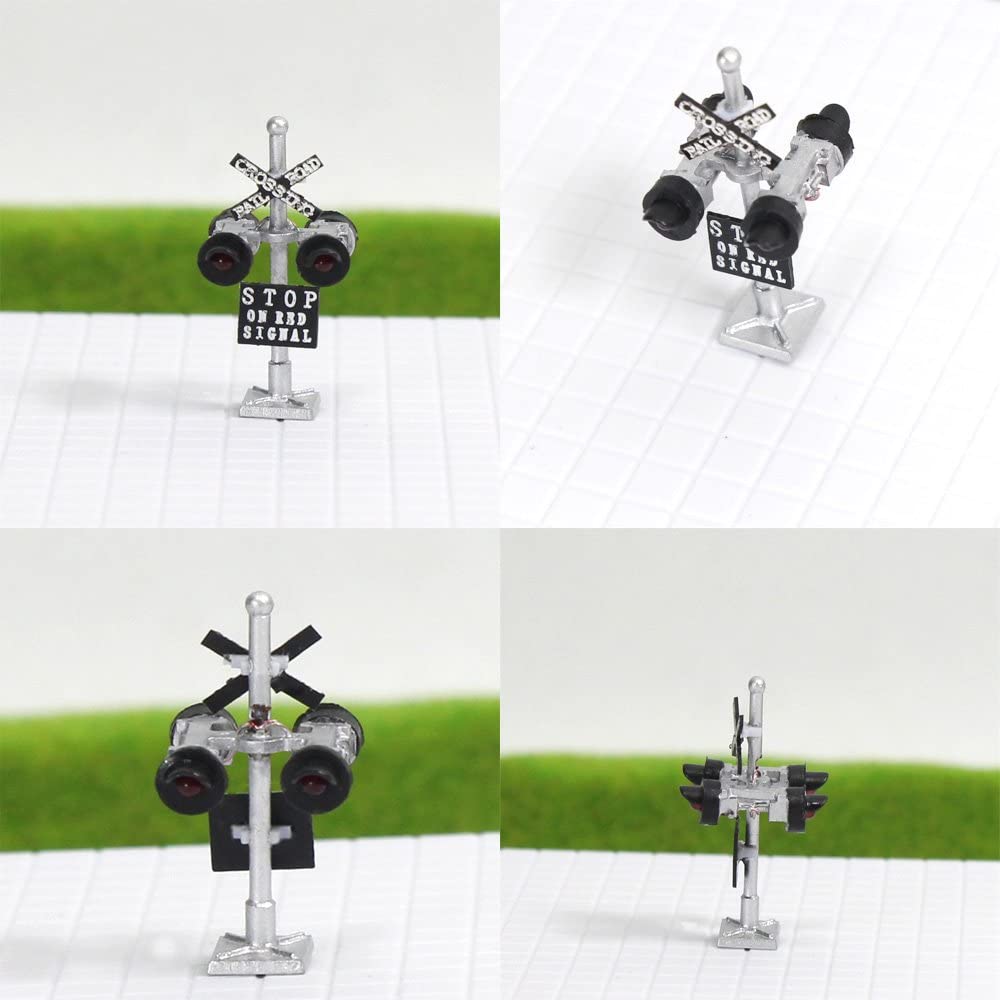 Evemodel JTD1506RP 1 set N Scale Railroad Train/Track Crossing Sign 4 heads LED made + Circuit board flasher-Flashing Red Train Signal Lights Decoration and Party