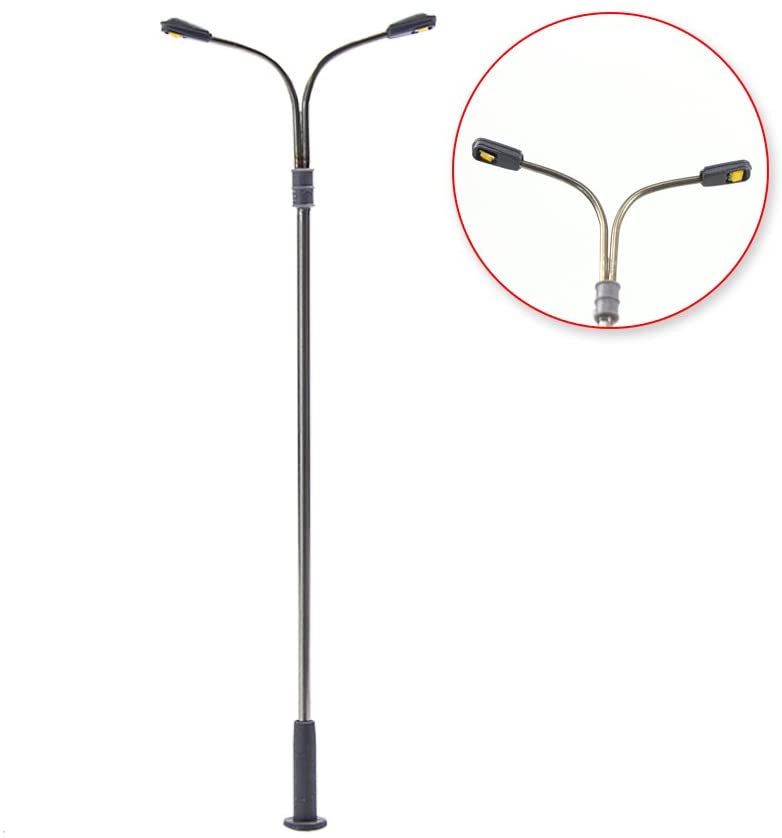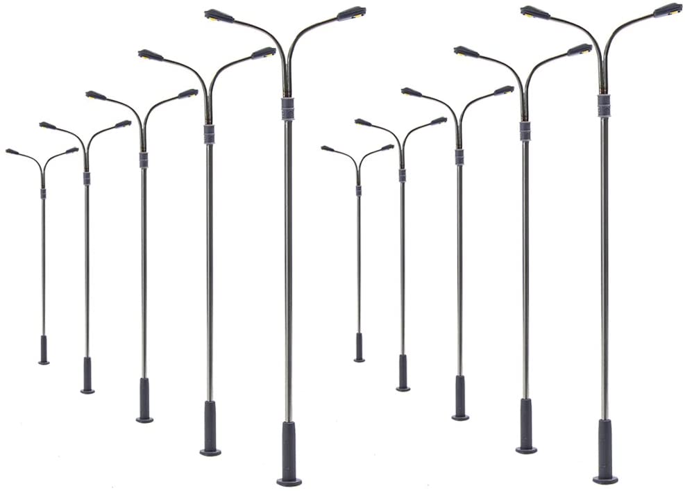 Features:100% Brand new and high qualityect for Railway & Building Layout!Made with white LEDslete with wires and LEDs and can be lighted scale lamp is very helpful props for model train Layout and Architectural building,train station layout ,school project model and miniature dollhousee Lampposts are suitable for use at supply voltages of 3V only NOT use them on 12V or 16V directely to avoid damaging the LED must connect a resistor in series before you will use them on 12V or 16V, I will supply compatible resistors for freese apply correct Operating Current 20mA to each LED tooifications:Brand:evemodel: Adjustable height upto 101mm(+/-4mm)rence Scale: 1:76~1:100,Suitable for OO scale or HO scale etc…ating Voltage: 3V, AC or DC Compatibleating Current: 20mArial: Steel Column Model Lamppoststing color:Brigh Whiteage included:10 Complete lamps.10 Resistors (not pre-soldered) for 9~18V operation.