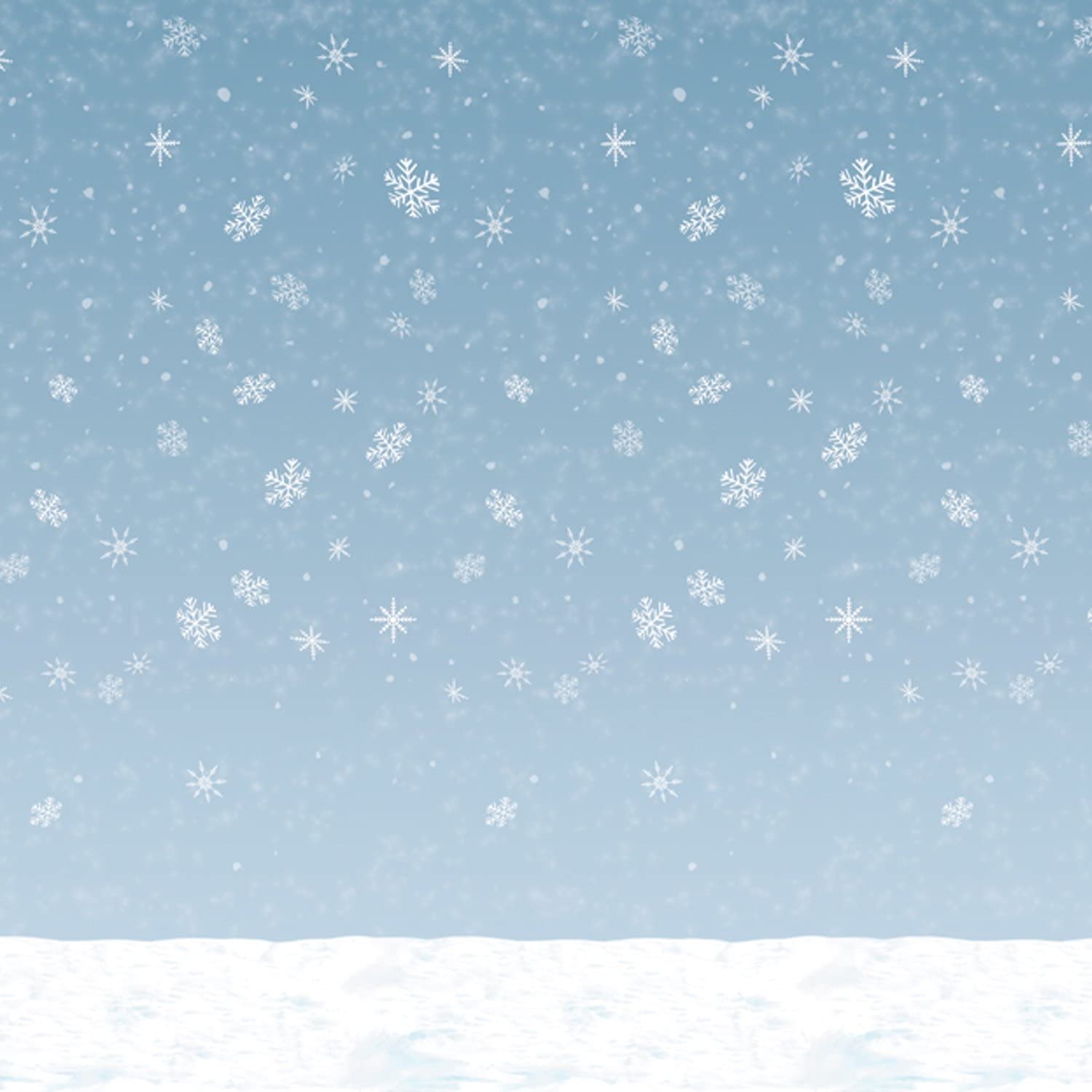 Perfect decorative backdrop for your winter festivities! Use this beautiful 30 foot wide by 4 foot tall PEVA sheet to instantly transform your room into a winter paradise. Image of a blue sky and white snowflakes. 30 ft x 4 ft. Photo print on one side only. Attach as desired.