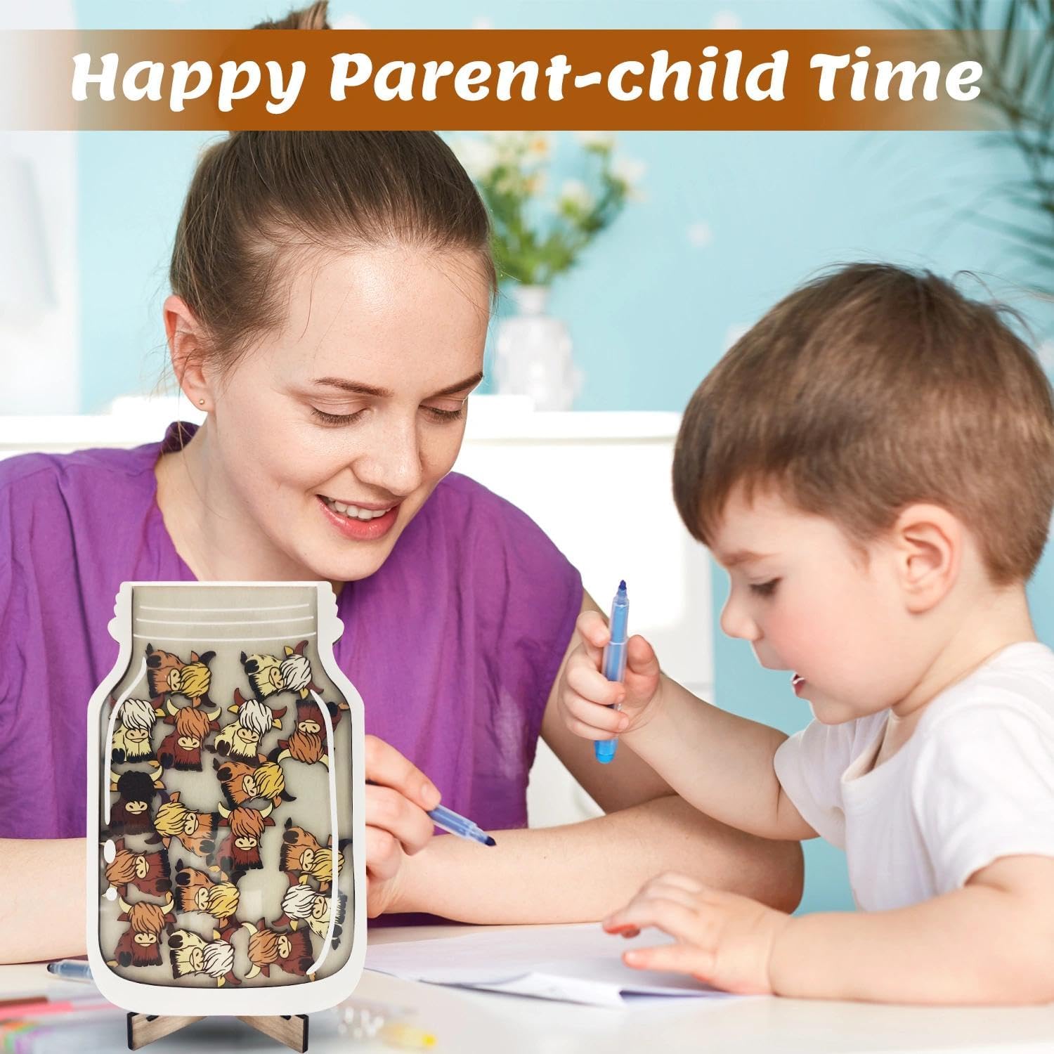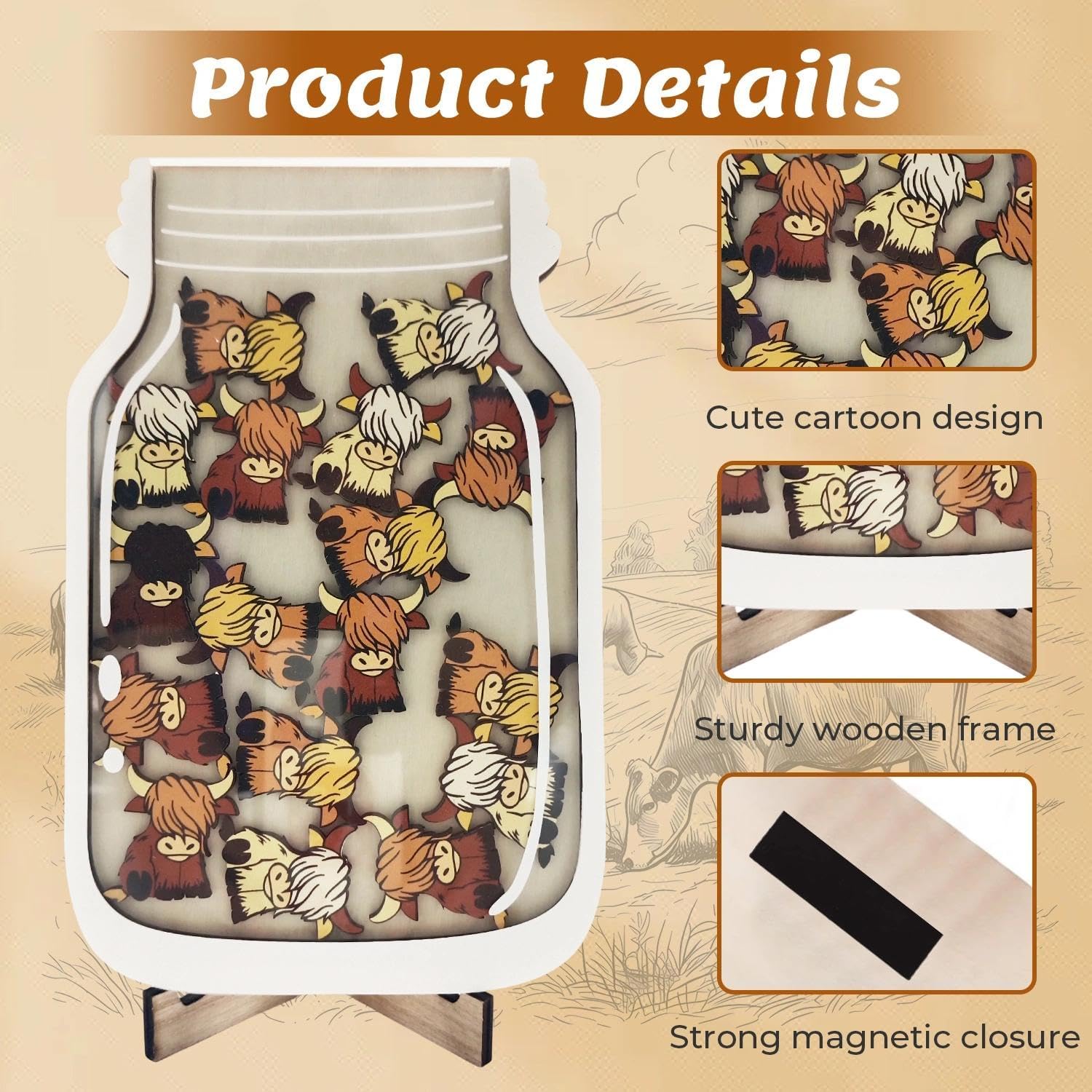 - Charming Highland Cow Theme: Our reward jars for children features a thoughtfully designed wooden base that ensures stable placement on any flat surface, paired with delightfully crafted Highland cow wooden cutouts. The funny, intricate details of the cow design add a playful touch that captures attention.