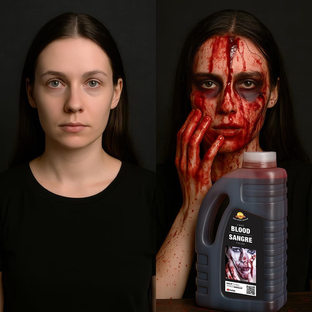 Fake blood makeup bottle applies to face and body for horror makeup and clothes for stained effect is easily eliminated with water and soap 1L bottle