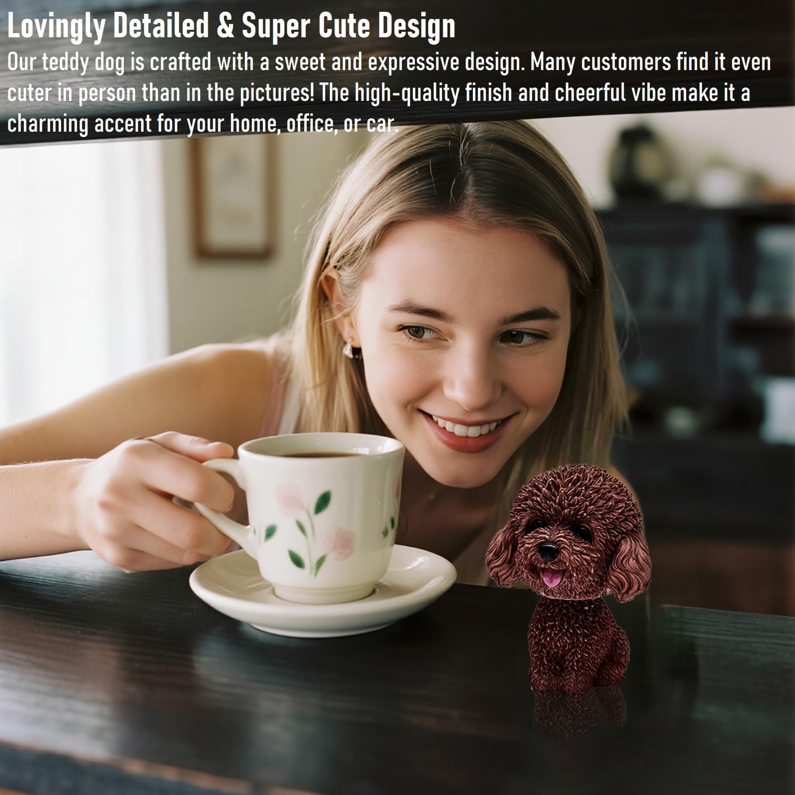 Fontee Nodding Dog Doll – Cute Ornament With Shaking Bobble Head for Car Dashboard, Home, Desk Decoration – Creative Gift (Teddy)