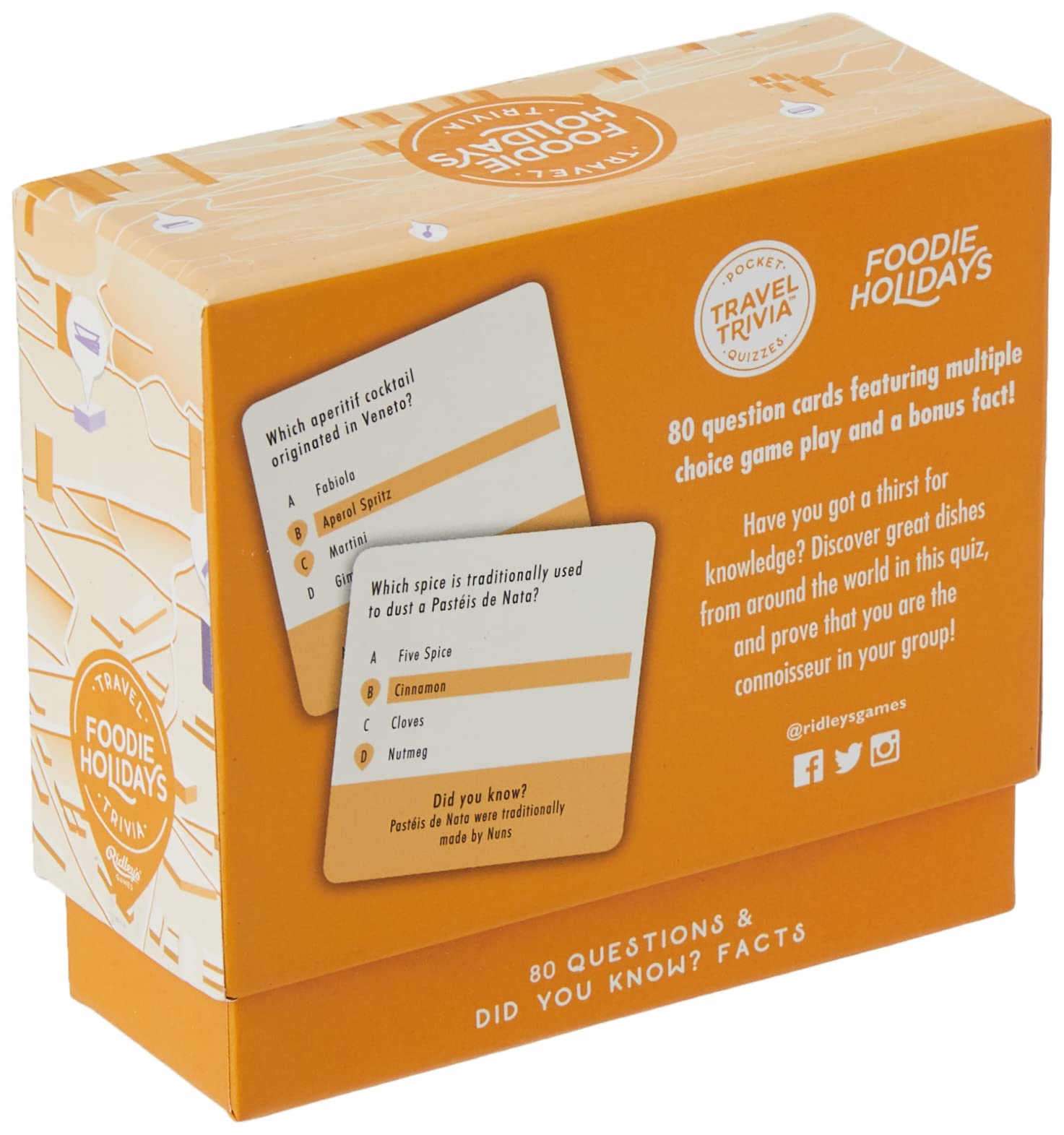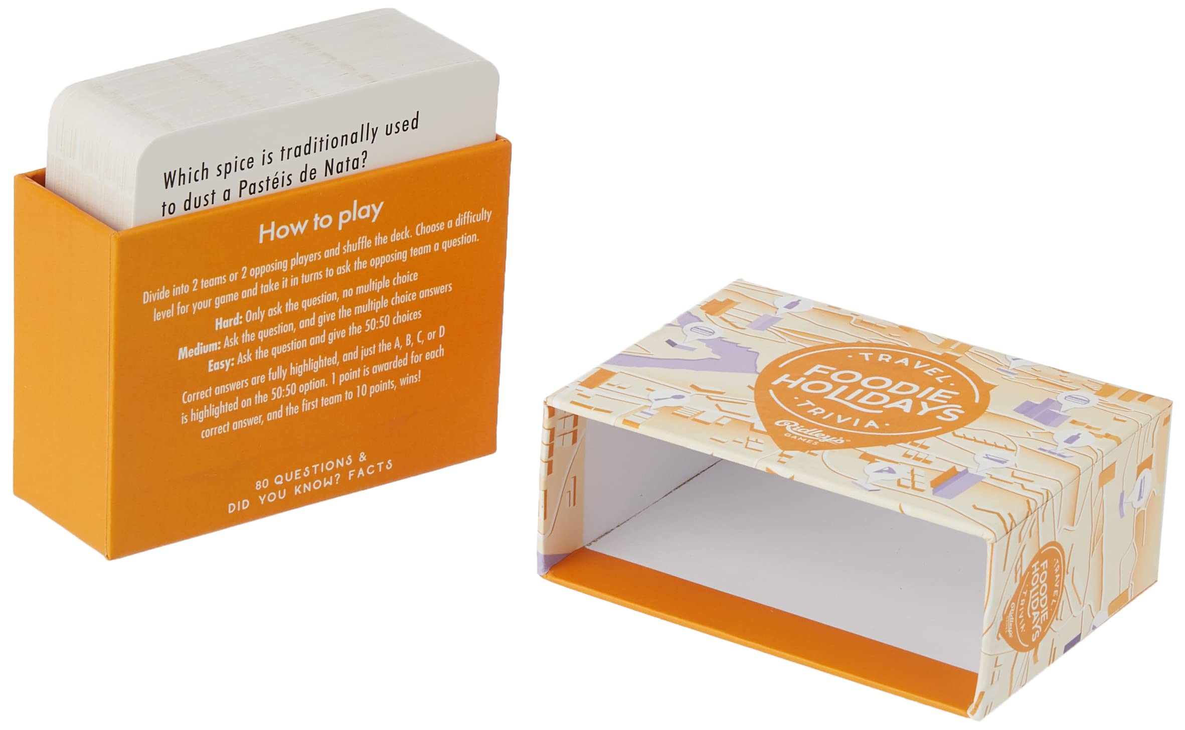 80 Question Trivia Card Set. World food themed. Comes in portable box.