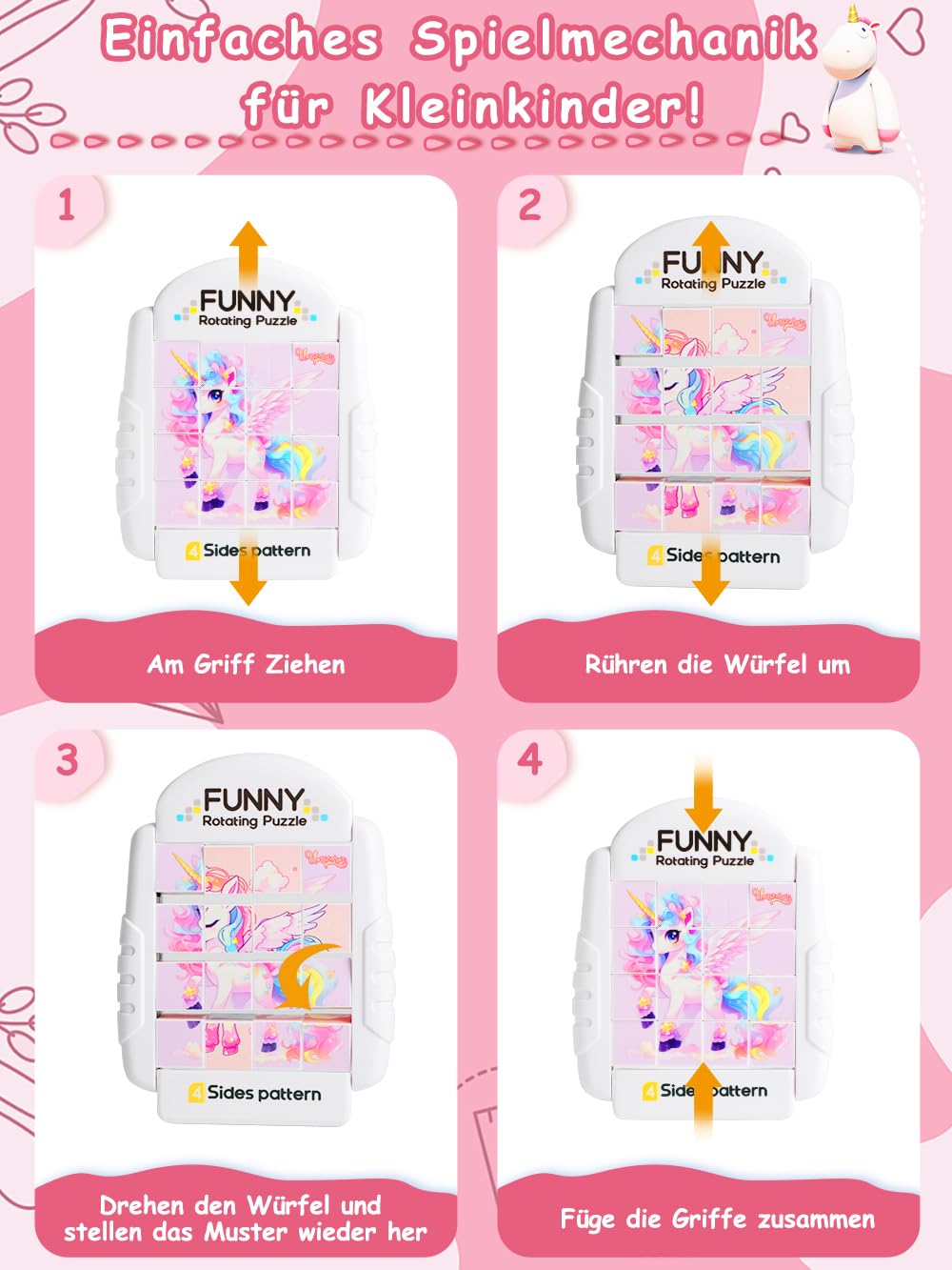 • The ‘Fun 4×4 Rotating Puzzle’ is a creative toy designed specifically for children aged 2 to 8. This puzzle set includes a variety of adorable designs such as unicorns, dinosaurs, animals, special vehicles, cars, and marine life, each brimming with fun and imagination. Through puzzle solving, children can develop hand-eye coordination, logical thinking, and spatial imagination. The puzzle board features a 4×4 rotating design, allowing children to enjoy the changing combinations of different patterns during the puzzle-solving process, adding to the fun and challenge.