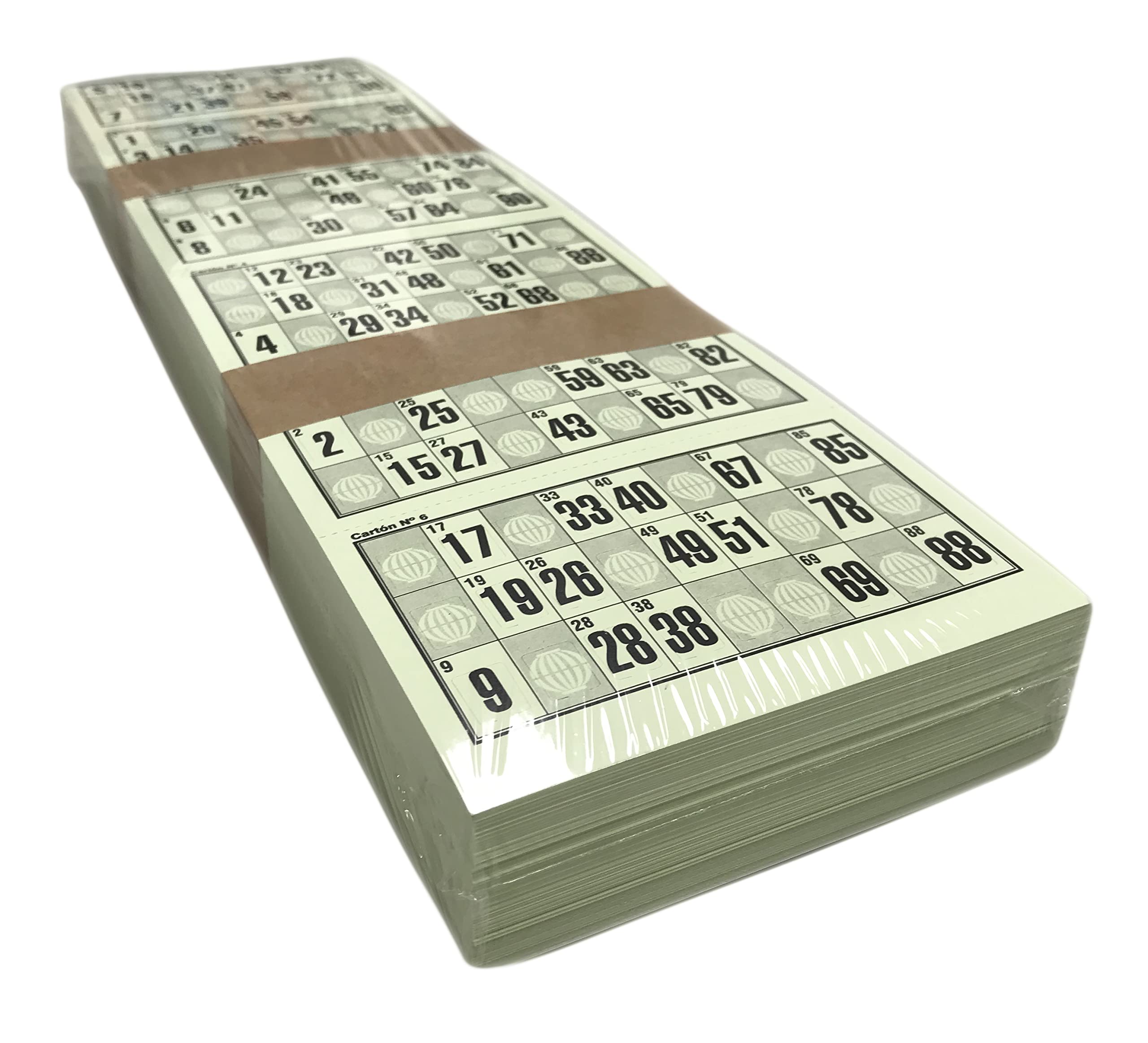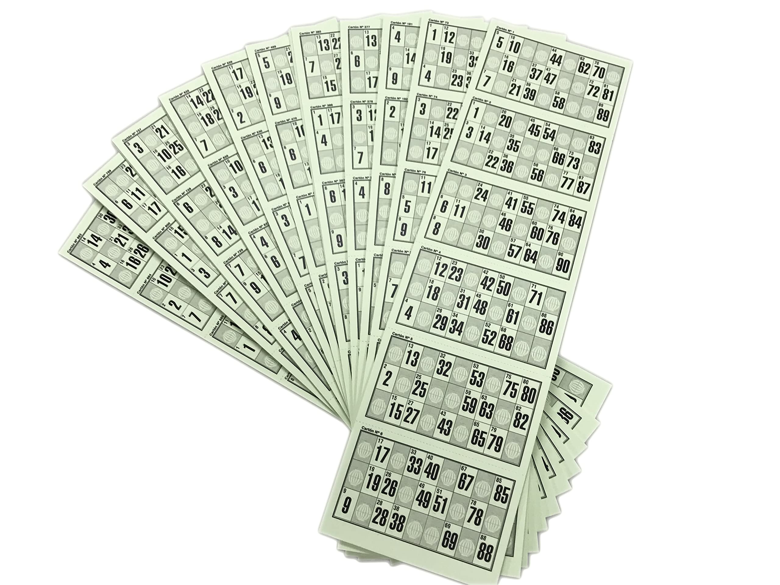 Cartons the numbers die cut individually, in addition to carrying a cutting line to separate the cartons from each other. The package carries 1 Complete Series of 960 cartons, being completely different between them. They are individually numbered so, if you buy several series, you can ensure that there will not be cards with the same numbering in the same draw. They are made for 90 ball bingos. Made of high quality 240g cardboard, in green color with black ink for better view of numbers. The measurements of one cardboard are 105 x 65 mm.