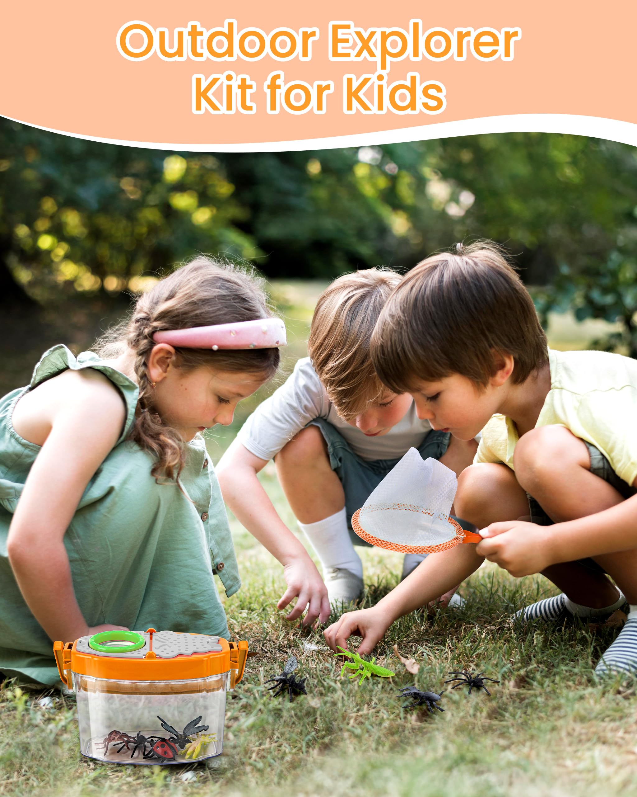 Growithu Bug Hunting Kit for Children: 23 PCS Bug Catcher for Kids Outdoor Explorer Toys Orange for 3 4 5 6 7 Year Old