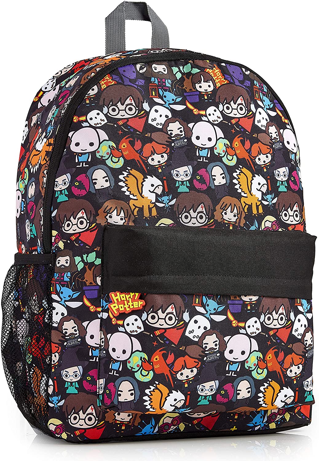 - HARRY POTTER BACKPACK — Our school bag for boys and girls features the most popular Harry Potter characters in a cute printed all over design including, Dumbledore, Ron Weasley, Hermione Granger, Minerva, hippogriff, Harry Potter and many more. It can be used as a school bag, as a sport bag and even for the holidays. This large rucksack also features padded adjustable straps for comfort, an elasticated mesh side pocket, zipped large front pocket and main compartment.