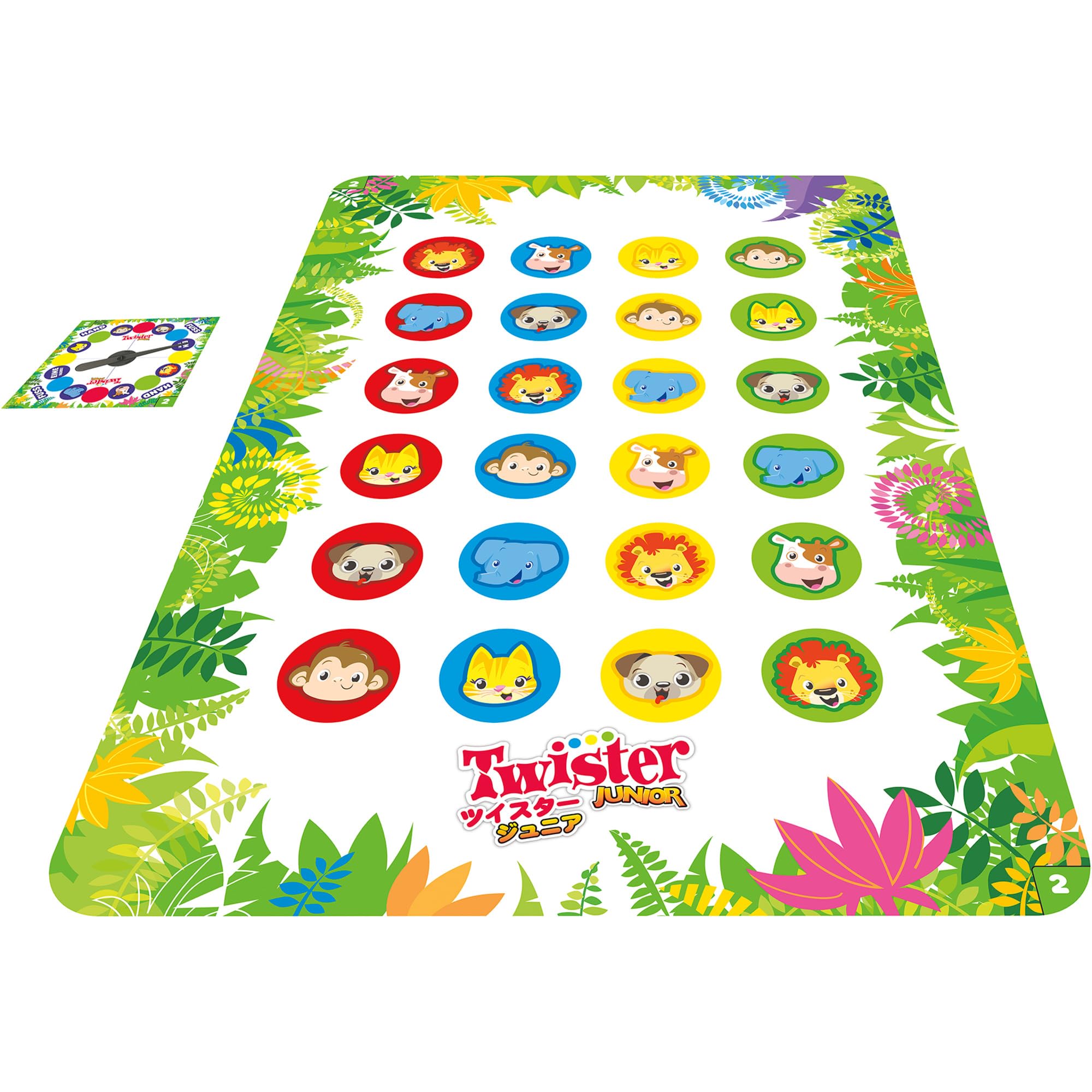 - 2 GAMES IN ONE: With a double-sided mat and a double-sided turntable, Twister Junior offers twice the fun. On one side of the mat, children can play animal safari and on the other side animal party