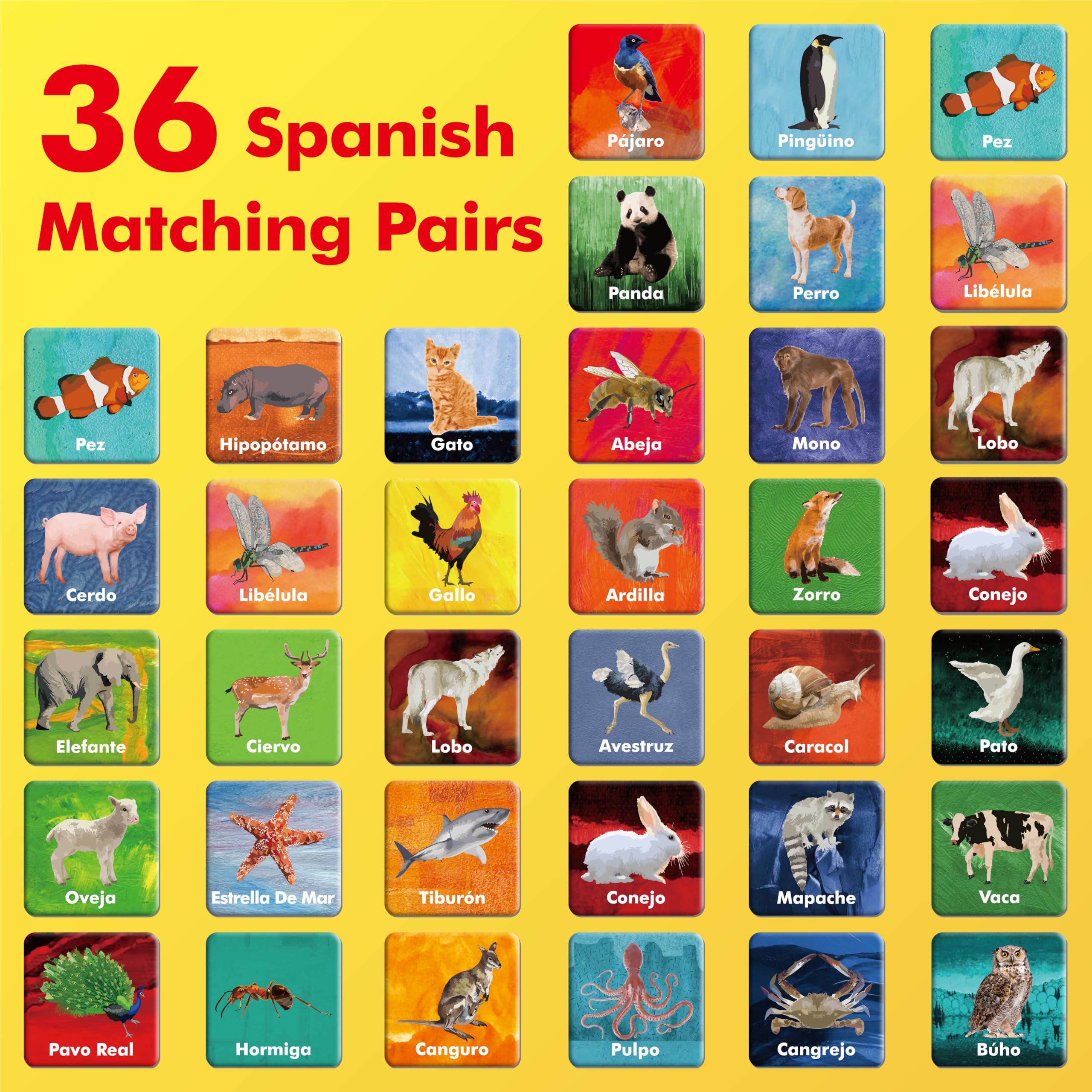 Perfect For: Challenge problem solving and develop memory skills of toddlers. Kids will get excited when they find the match themselves and its always fun to see who has the most matches. Its great for Spanish speakers or Spanish students.