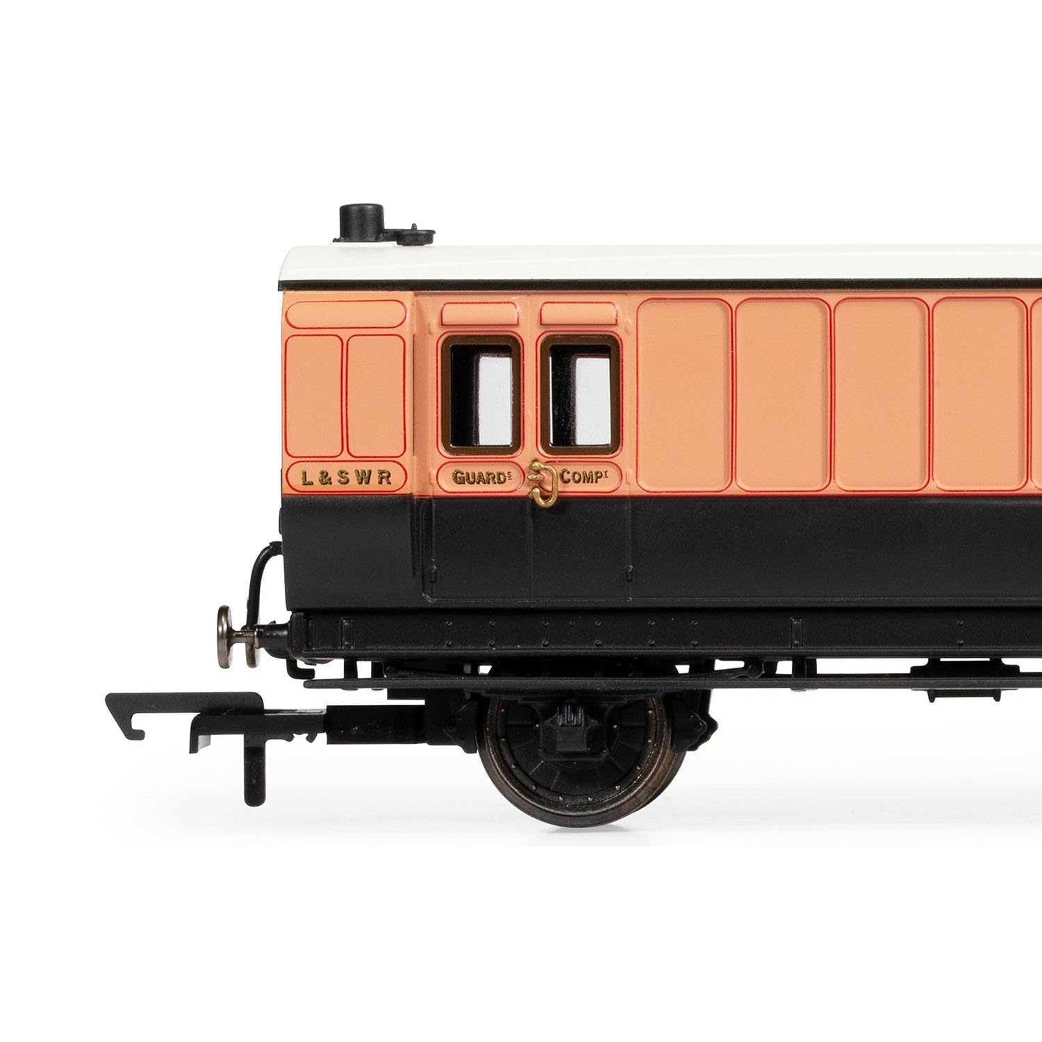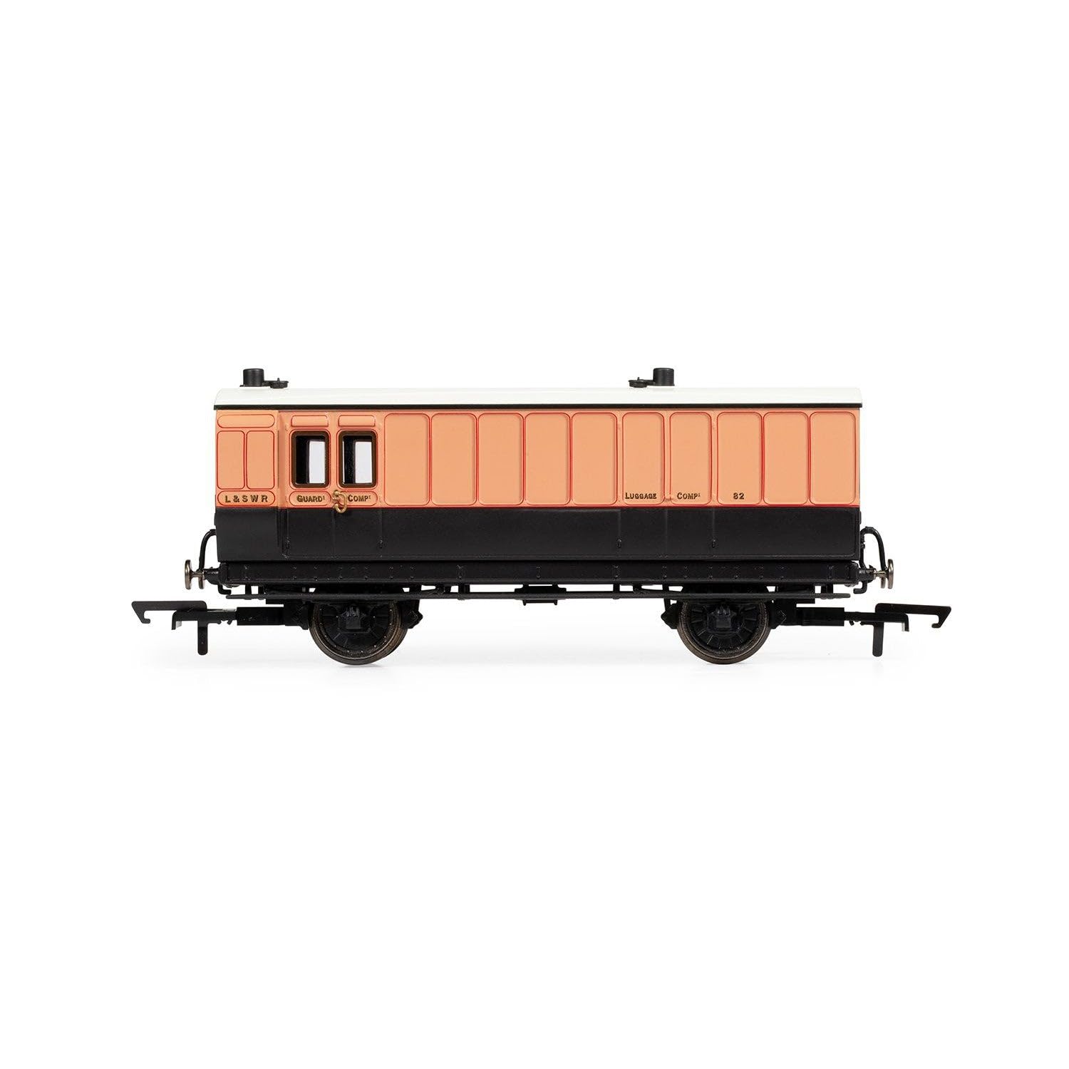 Hornby R40295 LSWR, 4 Wheel Coach, Passenger Brake, 82 – Era 2. Coach OO Gauge, Black, 00 Gauge