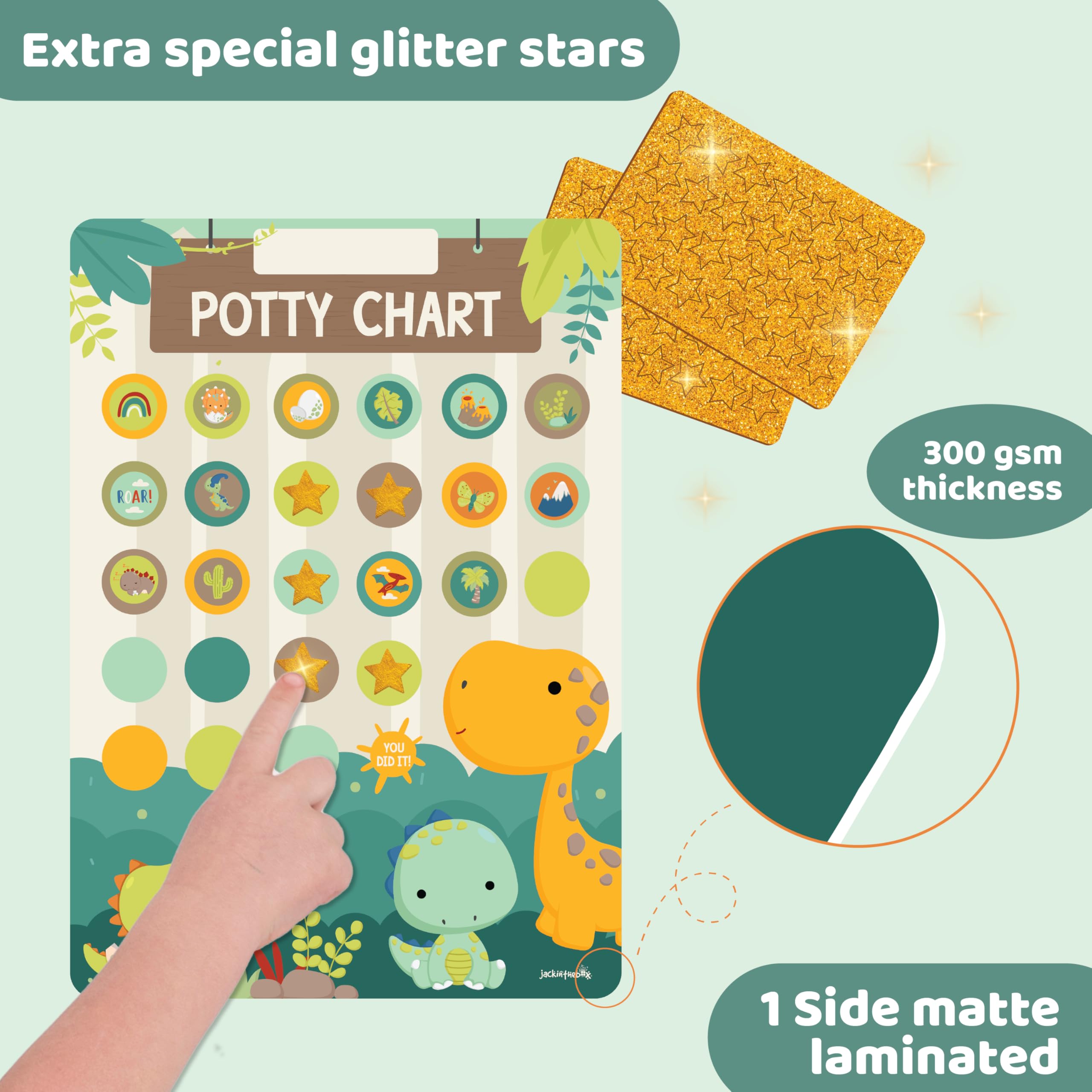 jackinthebox Dinosaur Potty Training Sticker Charts for Toddler Boys & Girls, 100+ Glitter Stickers, 320+ Printed Stickers, Achievement Certificate, Potty Training Kids Reward Chart