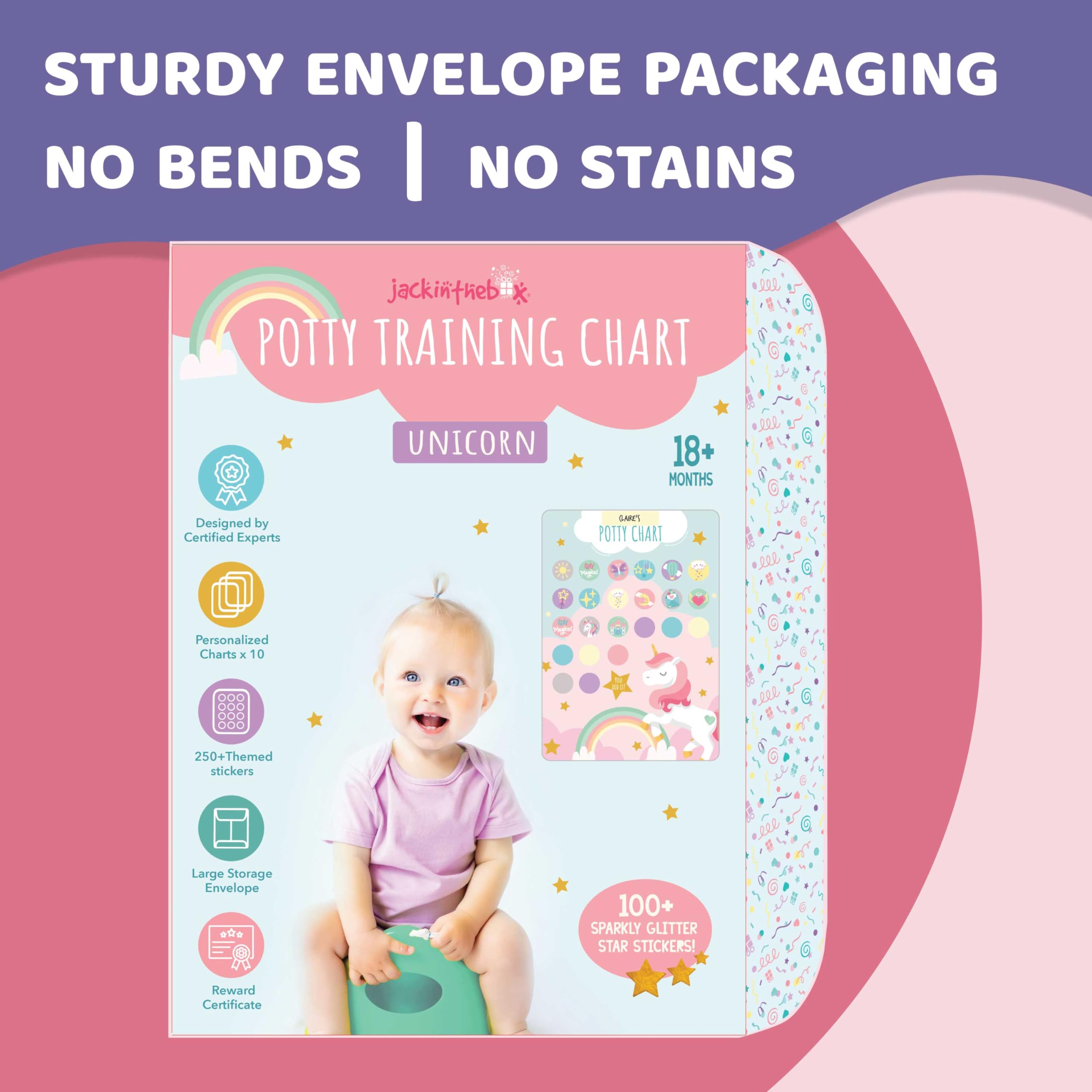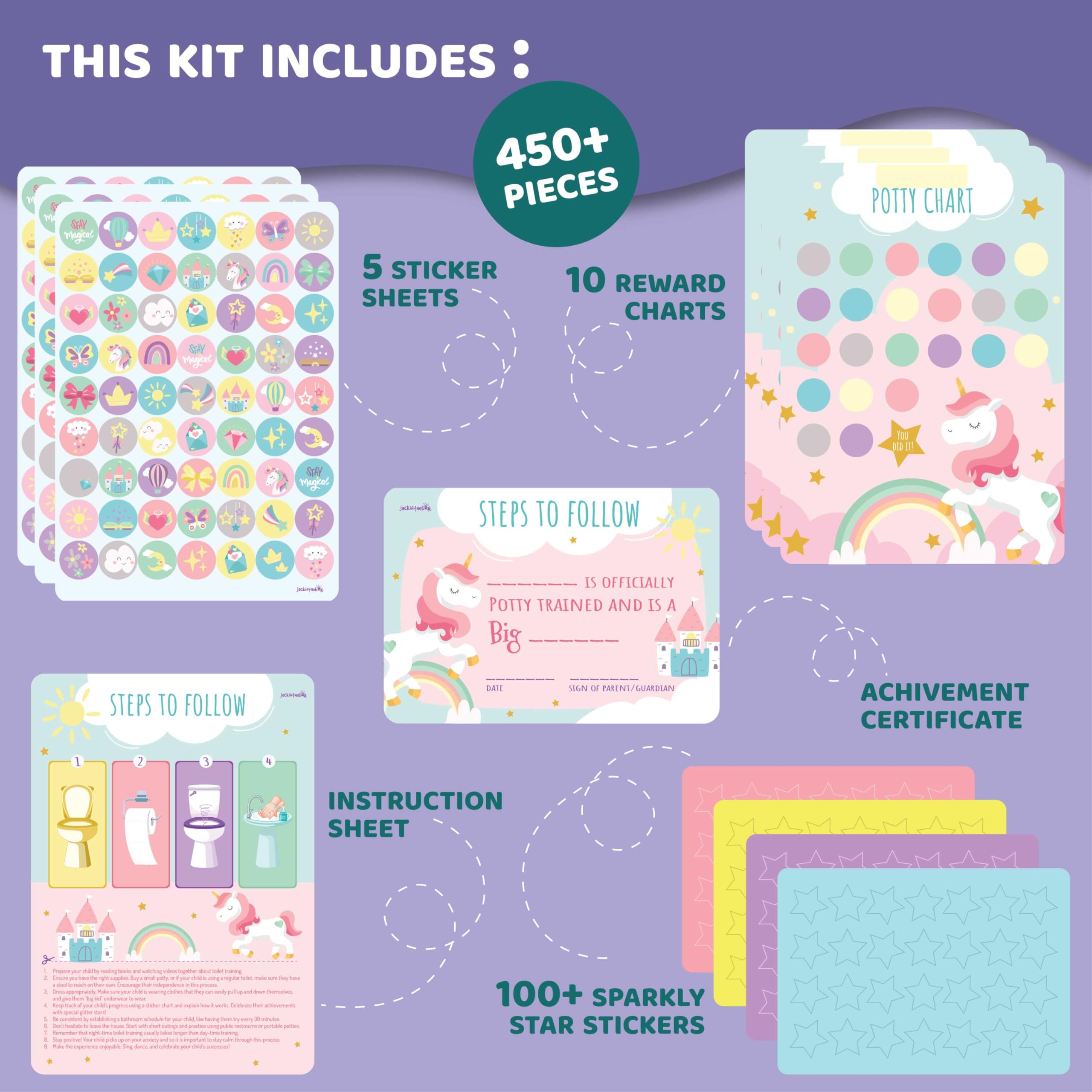 jackinthebox Unicorn Potty Training Sticker Charts for Toddler Girls, 100+ Glitter Stickers, 320+ Printed Stickers, Achievement Certificate | Potty Training Reward Chart for Kids, Kids Reward Chart