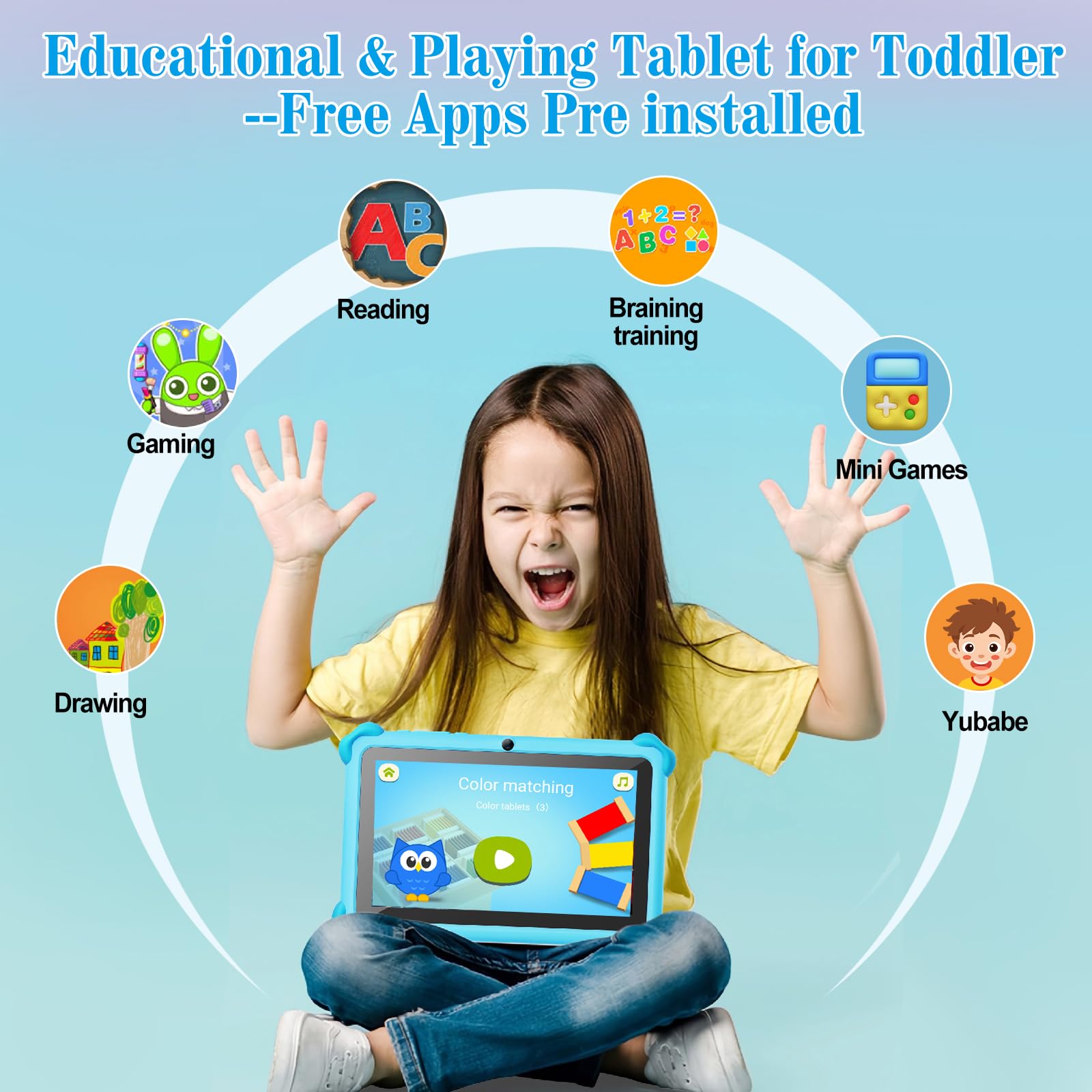 Kids Tablet for Toddlers, Childrens Tablet for Kids with WIFI Dual Camera Touch Screen Kid Edition APP Installed Tablets Shockproof Case Parental Controls 3-7 Year Toddler Boys Girls Gift (Blue)