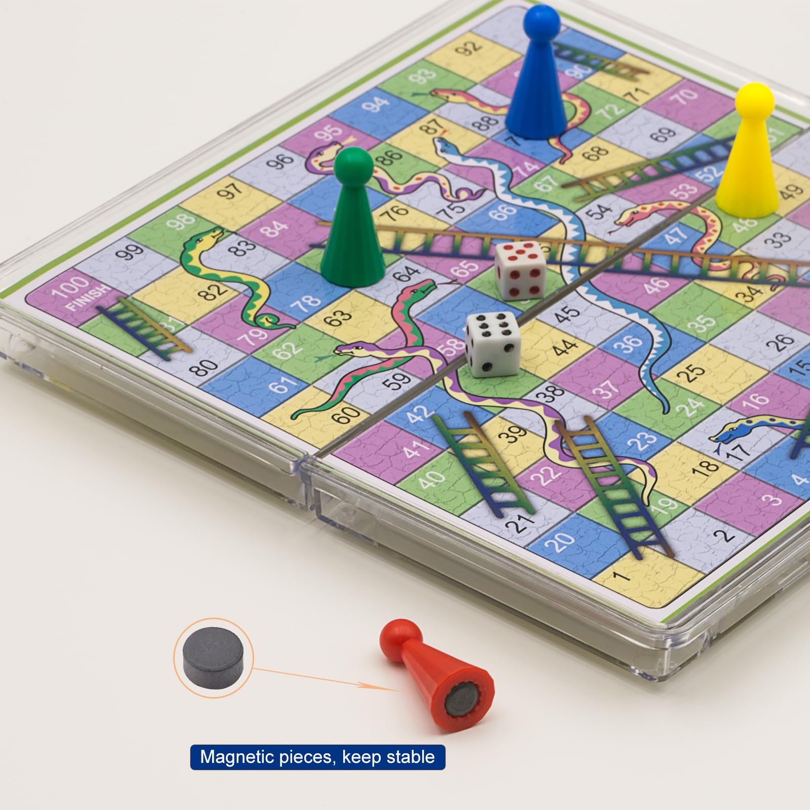 - HIGH QUALITYThe snakes and ladders board game set made of HIPS impact resistant plastic material, it is durable and non-toxic. We want to make every detail with all our heart and provide our customers with high quality products and services.