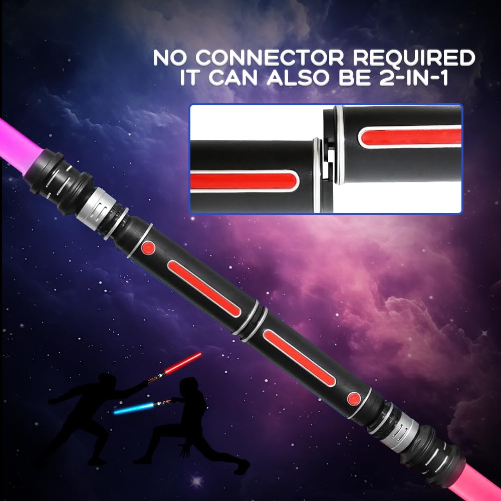 Lightsaber, 2-pack Connectable 12 LED color-changing lightsabers with FX Sounds, Extendable Light Sabers, Motion Sensitive Lightsabers for Dress Up Roleplay Halloween Party