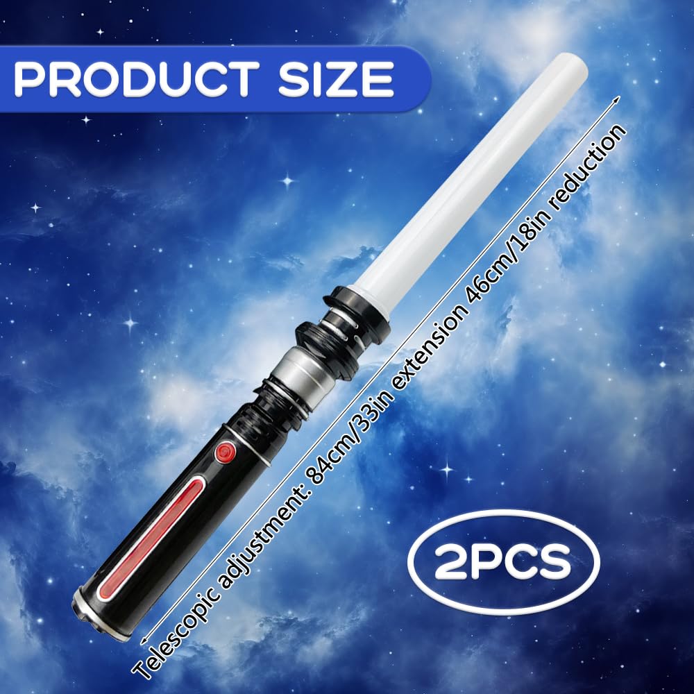 2-IN-1 RETRACTABLE: The lightsaber is a two-in-one package, you can get a fun and cool lightsaber when you place an order. The lightsaber is designed to be retractable and adjustable. The length of the lightsaber can be expanded from 46 cm when it is collapsed to 84 cm. It is very convenient to store and carry with you