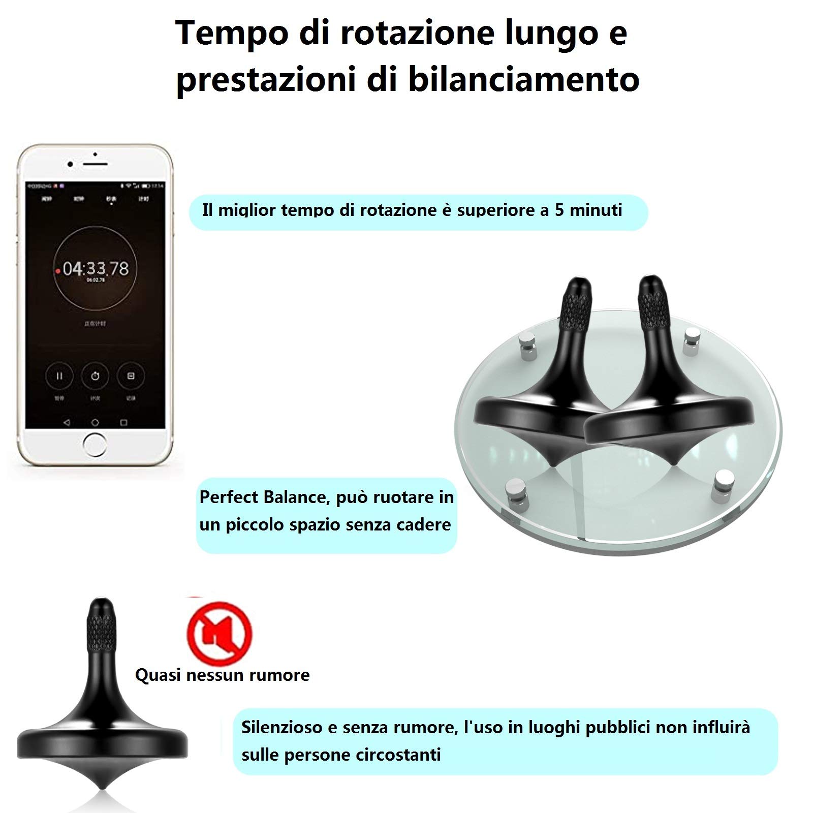 ★ The speed of top rotation around its axis determines the top sloshing. The slower the rotation, the bigger the wobble, the worse the stability; The faster you turn, no wobble, and therefore the better stability.