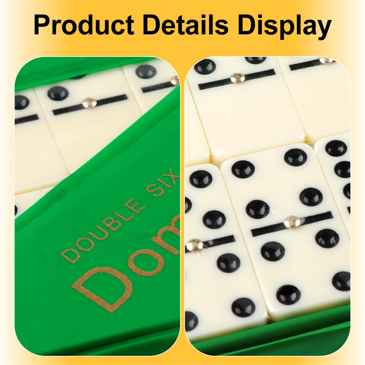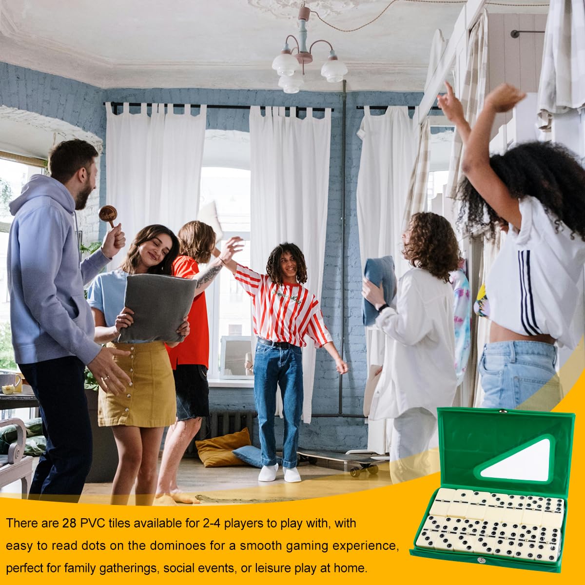 Traditional 28-Piece Dominoes with Green Box, Retro Design for Kids & Adults Board Games and Festival Parties