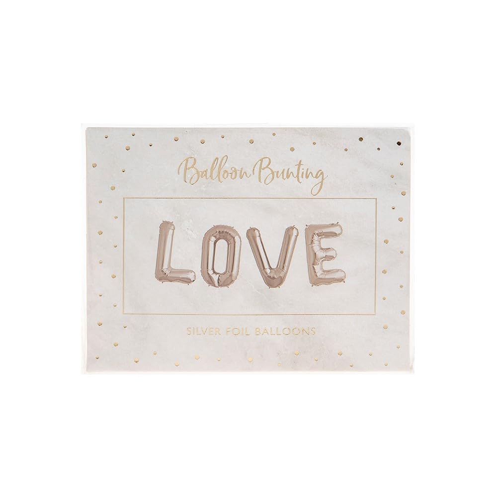 - Details: A set of silver foiled bunting balloons on a string spelling out “LOVE”, each letter is approx. 45cm tall