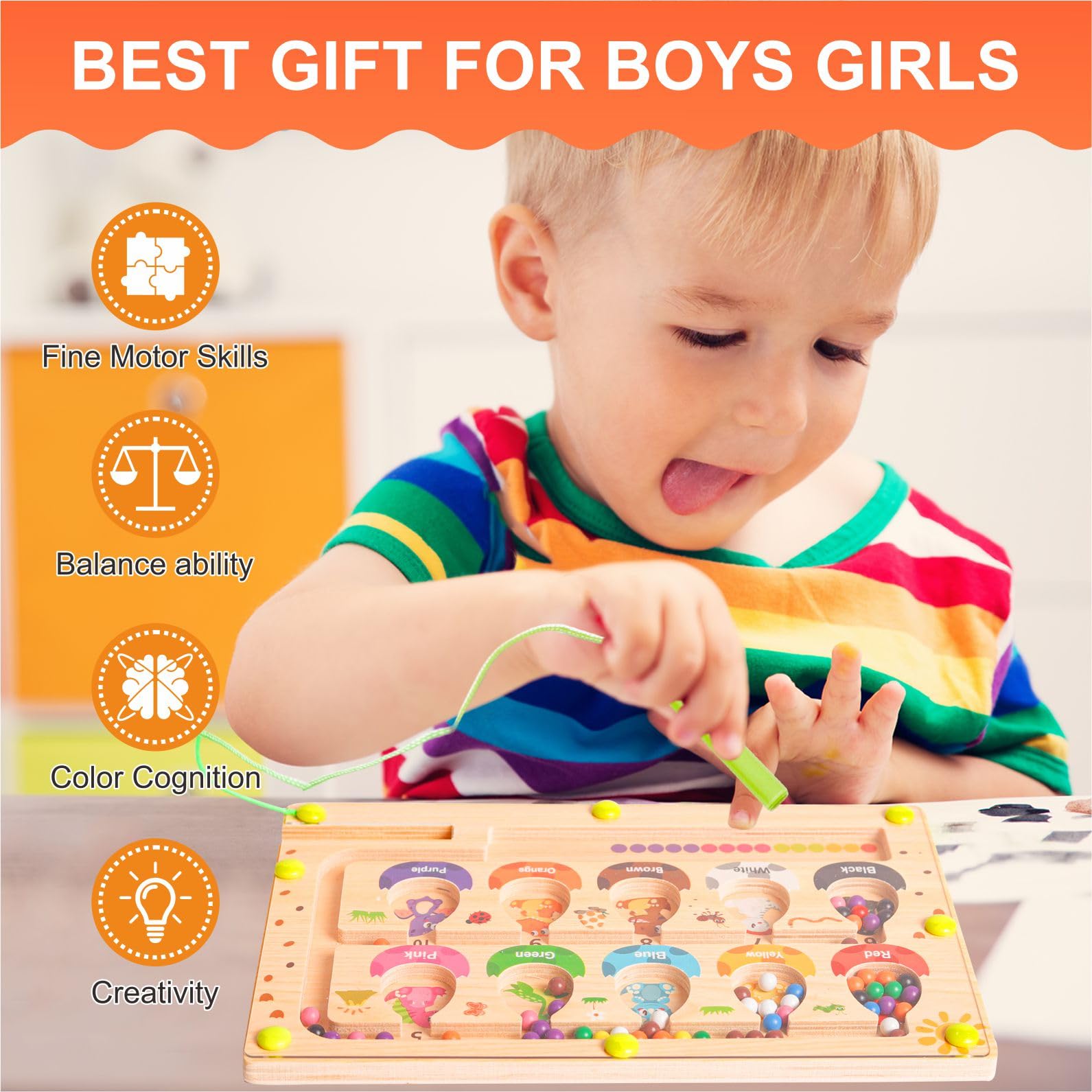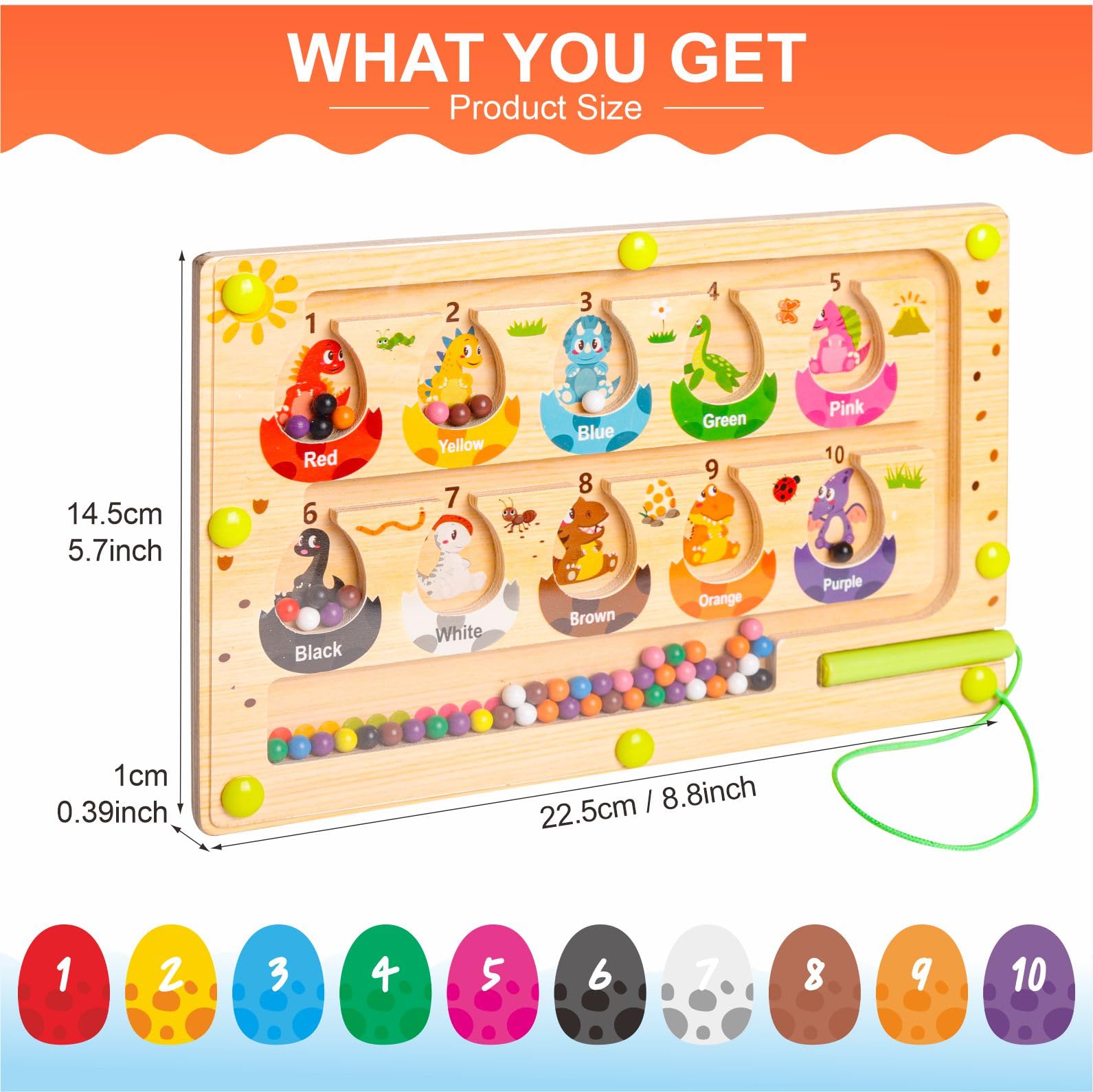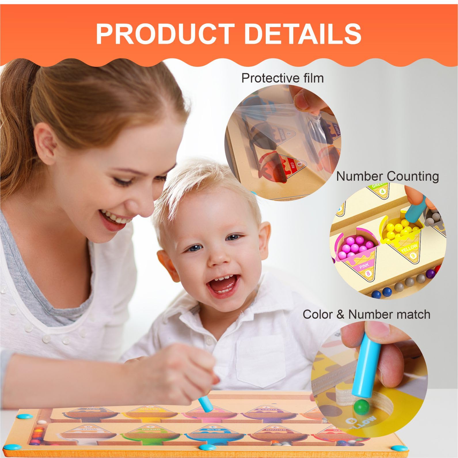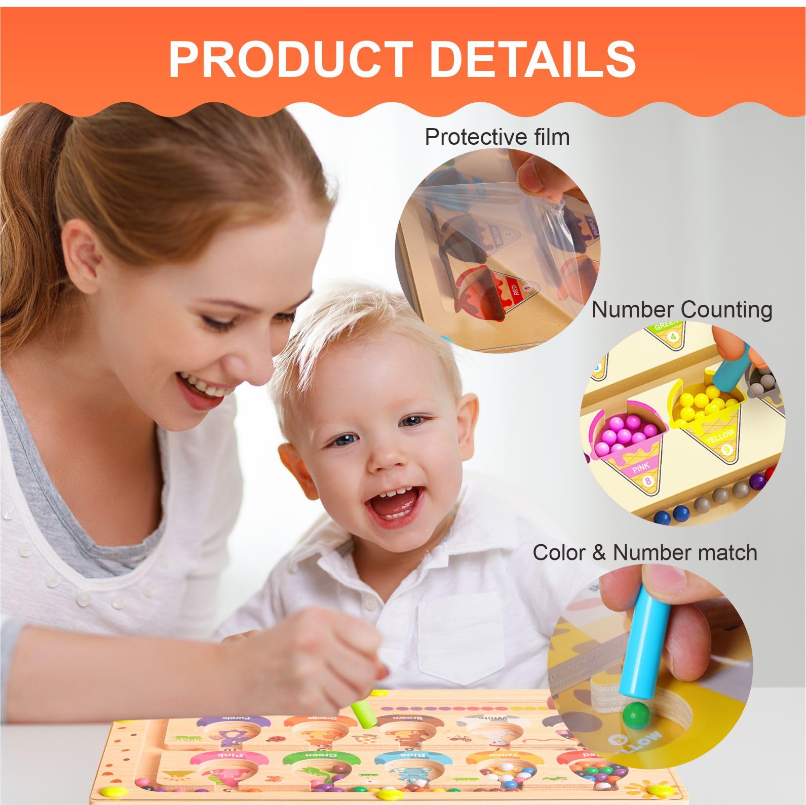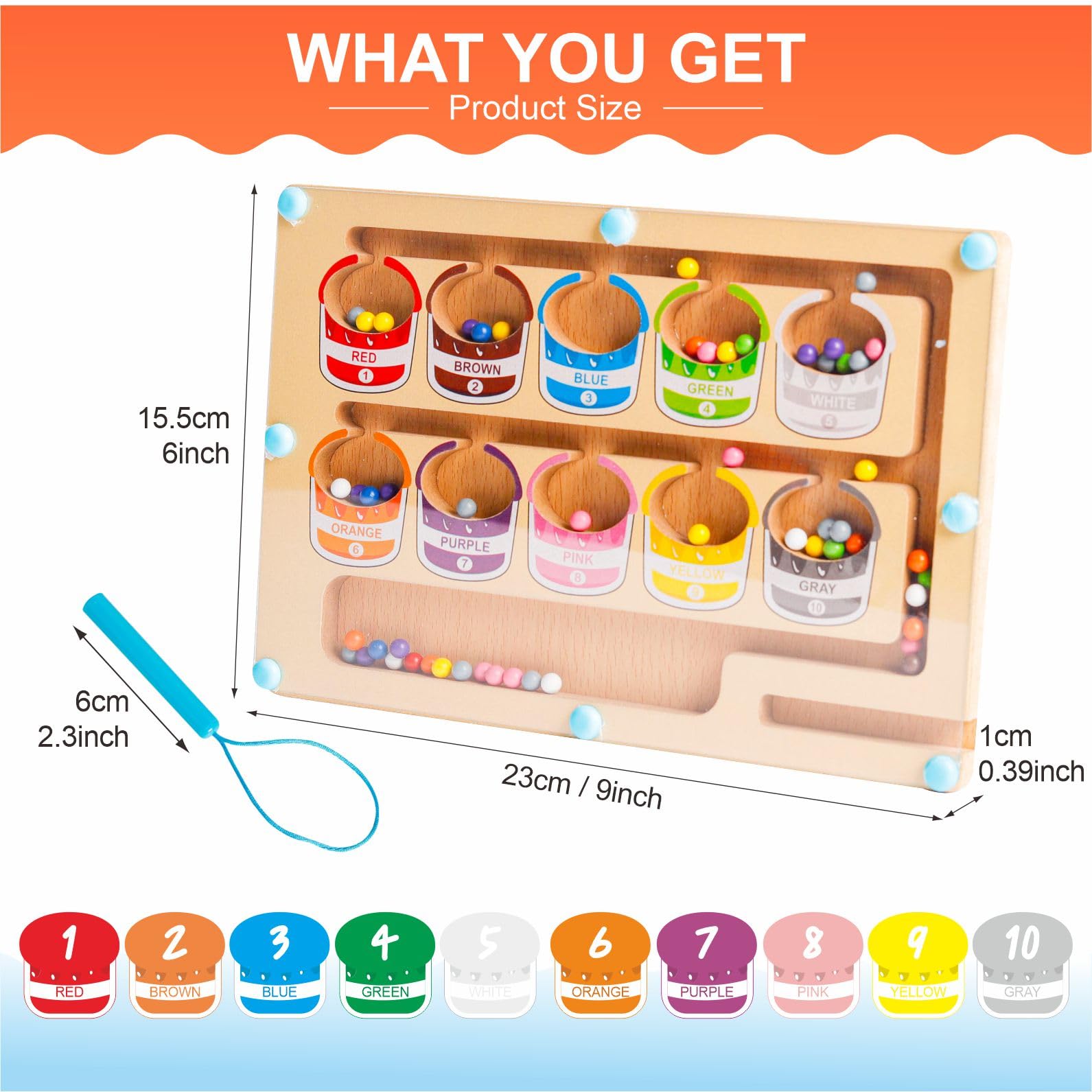 【Ultimate Montessori Learning Kit】Spark curiosity with this magnetic number & colour maze! Featuring 50 vibrant beads + 10 counting zones, this wooden educational toy develops preschool counting skills & colour recognition for 3-5 year olds. Montessori-approved design encourages independent play while boosting fine motor skills through magnetic wand manipulation.
