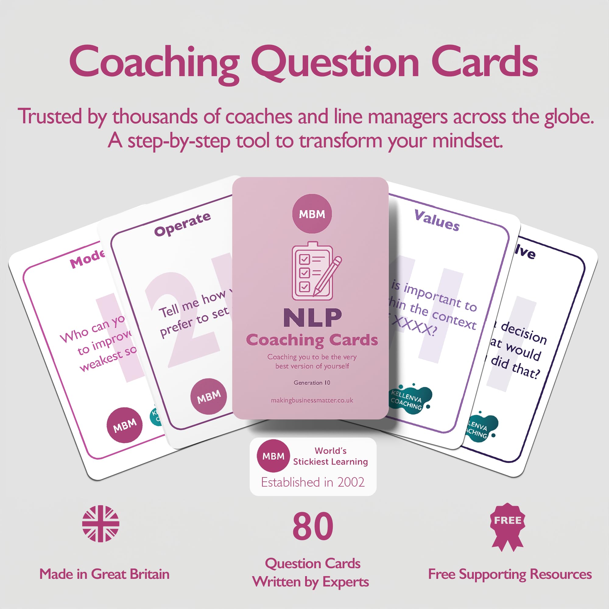 MBM 80 NLP Coaching Cards Emotion & Mindset Flash Cards for Coaches and Managers | Conversation Starters to Support Emotional Intelligence, Positive Mindset & Self-Awareness