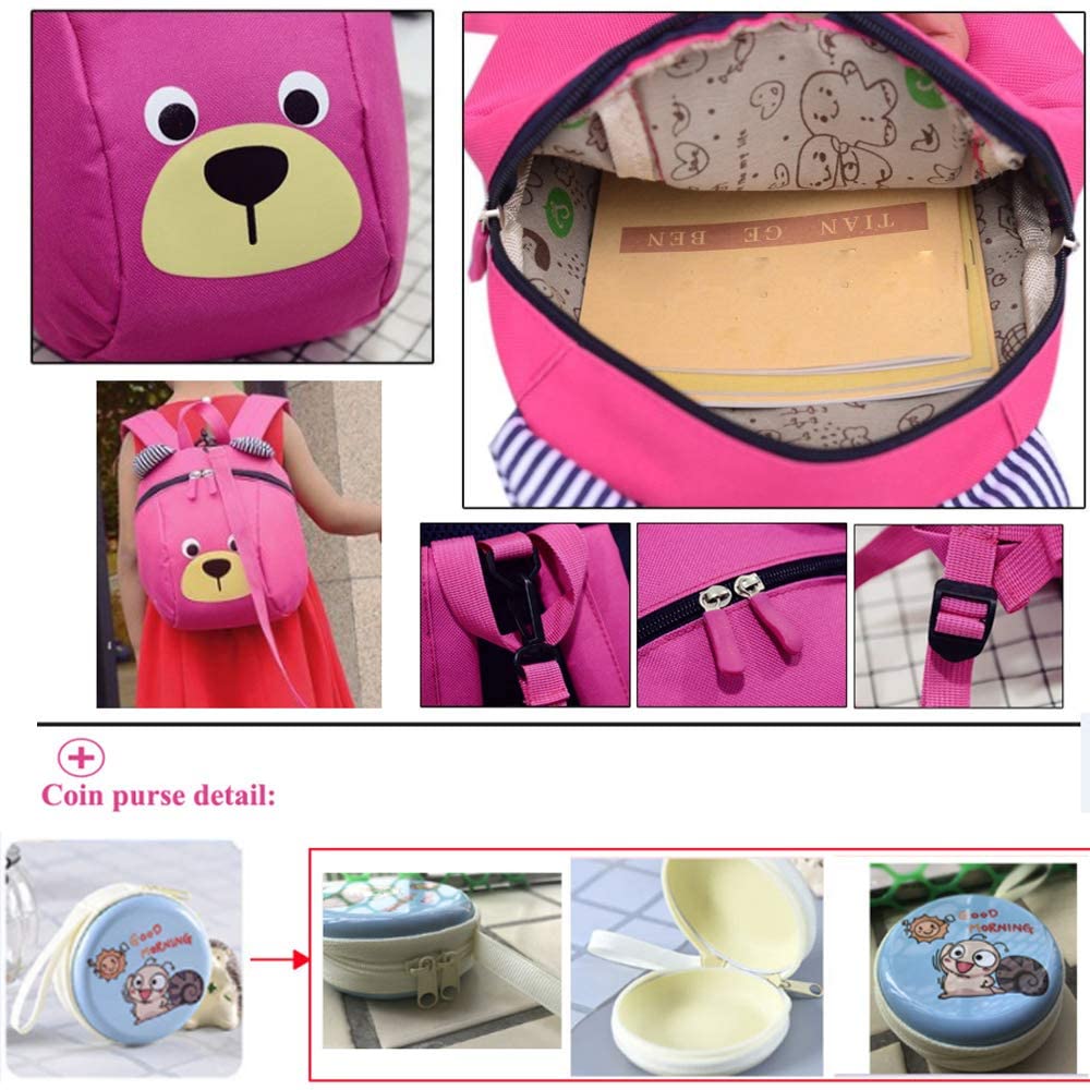 MCUILEE Cute Bear Children Toddler Backpack Book Bags Baby Harness Bag with Safety Harnesses Reins Belt for Kids Girls and Boys,Rose Red
