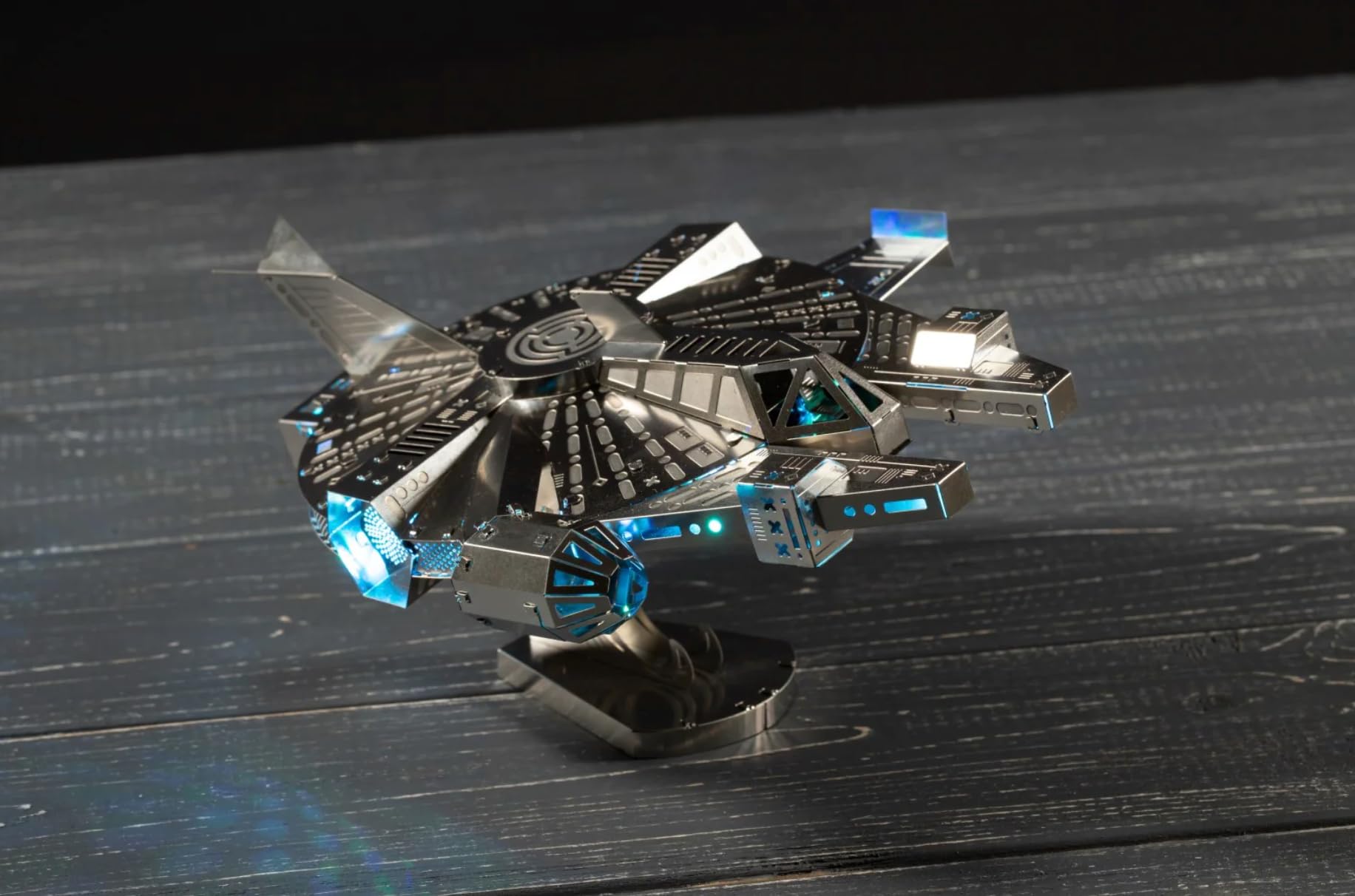 METAL-TIME Nebula Scout, Metal Starship Model, 3D Cosmos Starship Metal Model Kit, Multicolor LED Lights with Remote Control, 74 Pieces