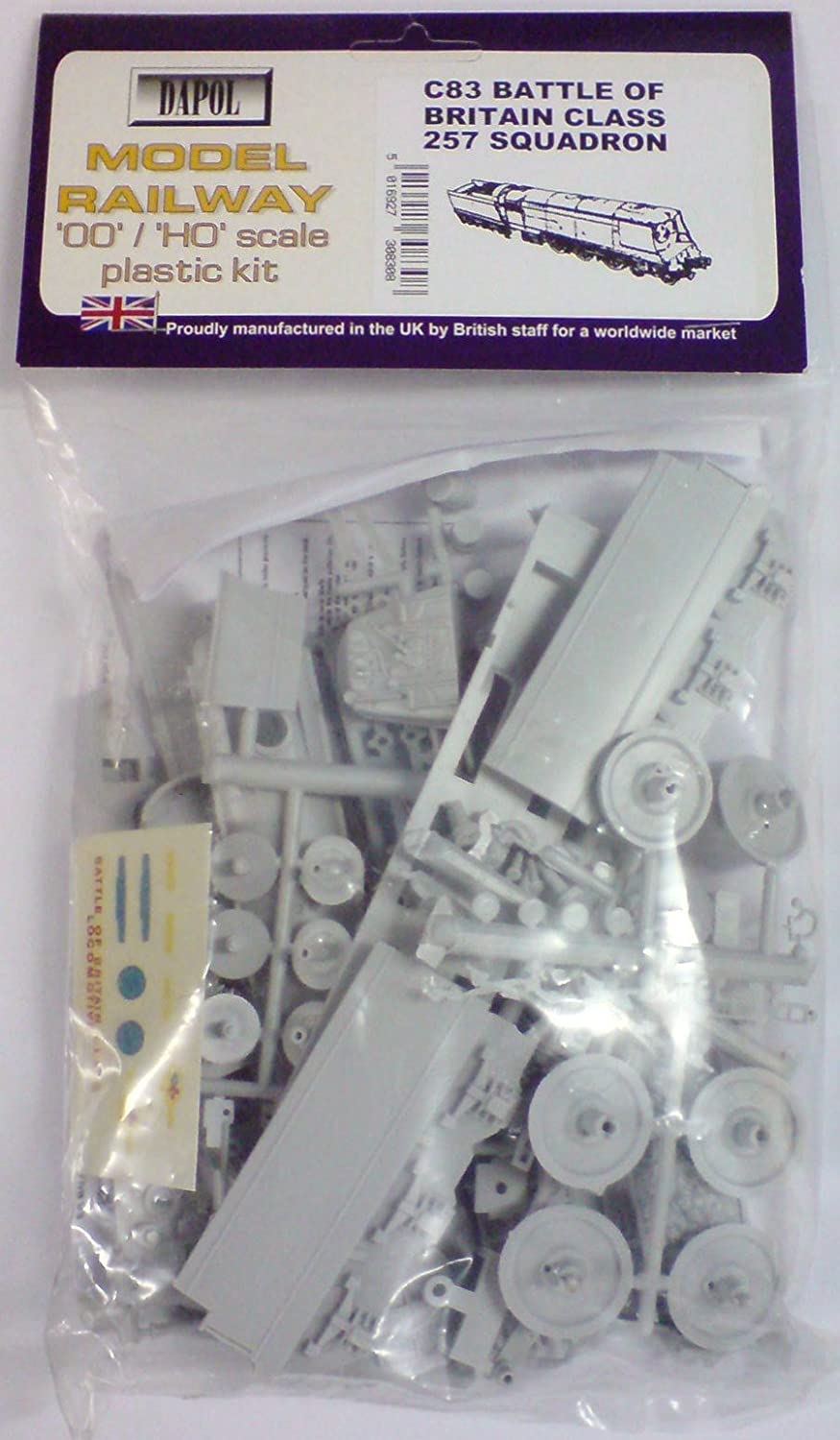 Dapol OO Gauge 1:76 Scale Plastic Model Kit – Battle of Britain Class Steam Locomotive – “257 Squadron”Manufacturers Description: OO Gauge Battle of Britain Class 257 Squadron. Kit will require assembly, painting and supplied transfers applying. Please note model shown is 92 Squadron, but is identical except for decals. PLEASE NOTE THAT THIS IS A PLASTIC MODEL KIT AND IS SUPPLIED UNASSEMBLED AND UNPAINTED. PAINT AND GLUE NOT INCLUDED.