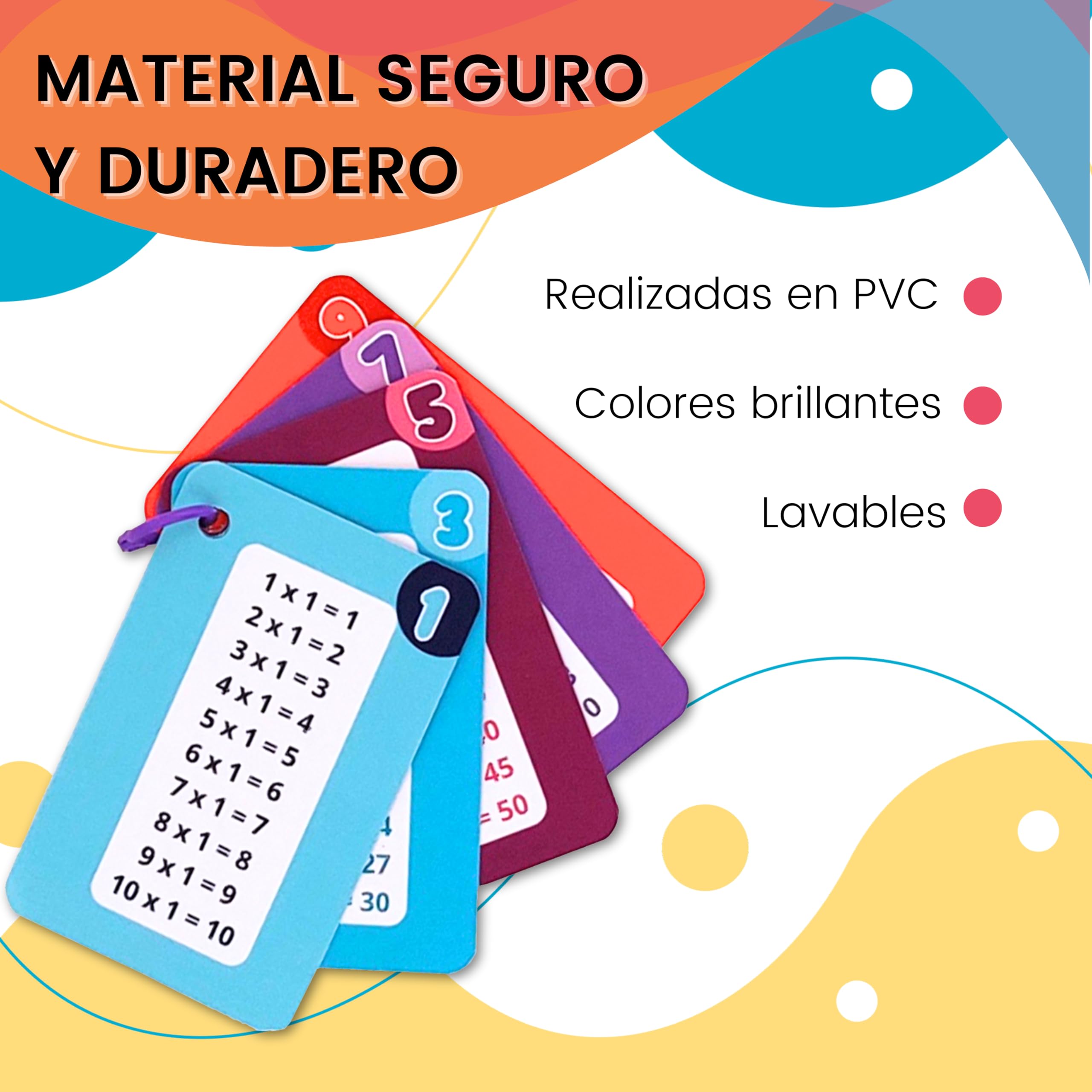 This keychain is a perfect tool to help children learn and practice multiplication boards easily and entertaining. With its compact and colourful design, this keyring is ideal for taking with you in your case or backpack. The keyring features a row of 5 cards printed on both sides, with numbers from 1 to 10. Each table is clearly represented, with the numbers in a large, easy-to-read font size. Plus, each board is colour-coded to make it easier to store. They are connected with a colourful plastic ring that you can attach and remove it. Children can use the keychain to practice the multiplication boards anytime and anywhere, whether at home, school or on the go. This will help them improve their math skills and gain confidence. In short, if you are looking for a useful and practical tool to help your children learn the multiplication tables, the multiplication board keychain for children is the perfect choice to encourage learning and fun at the same time.
