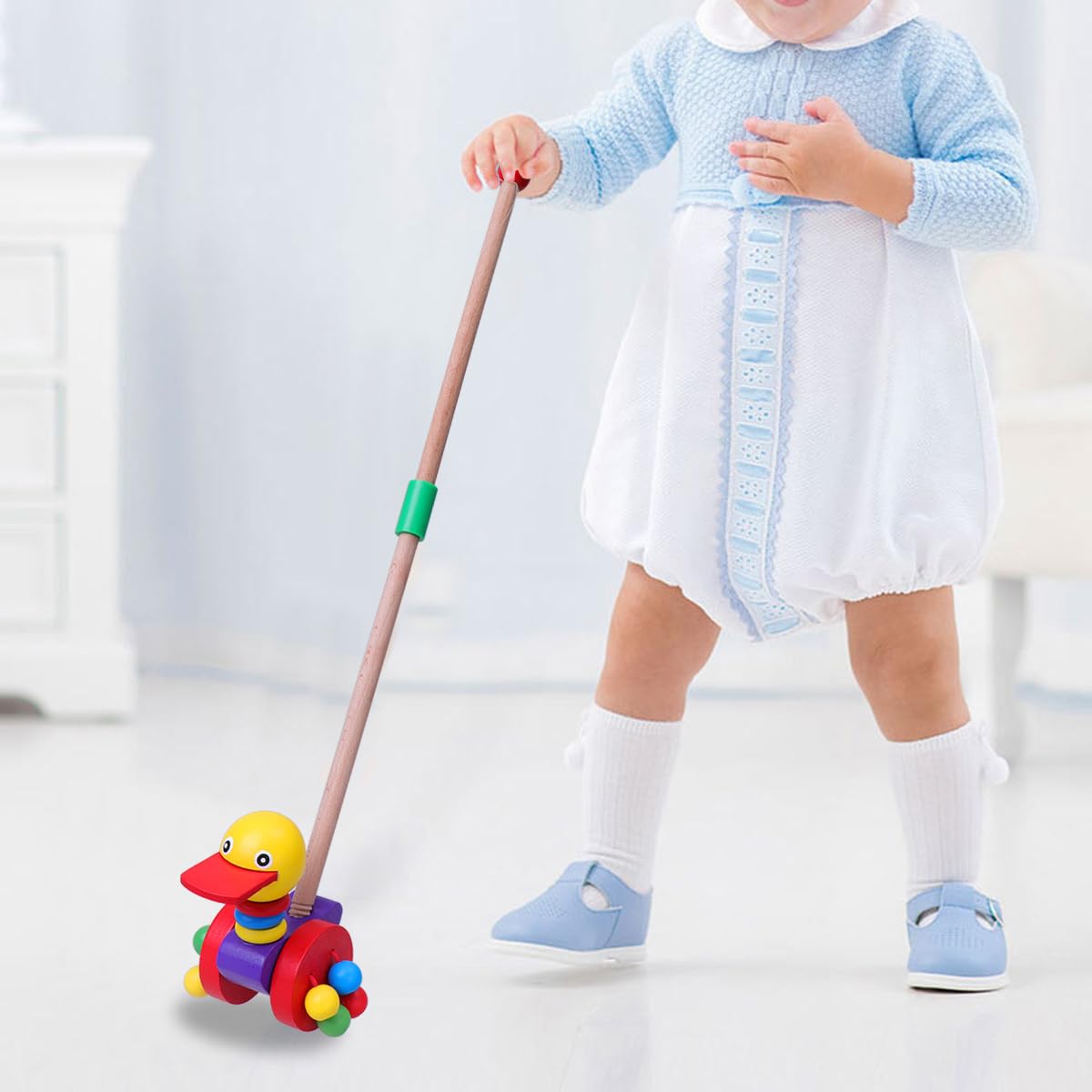 - Engaging Design: the wooden push-along toy features a vibrant cartoon animal design that captures children’s attention while encouraging active play.