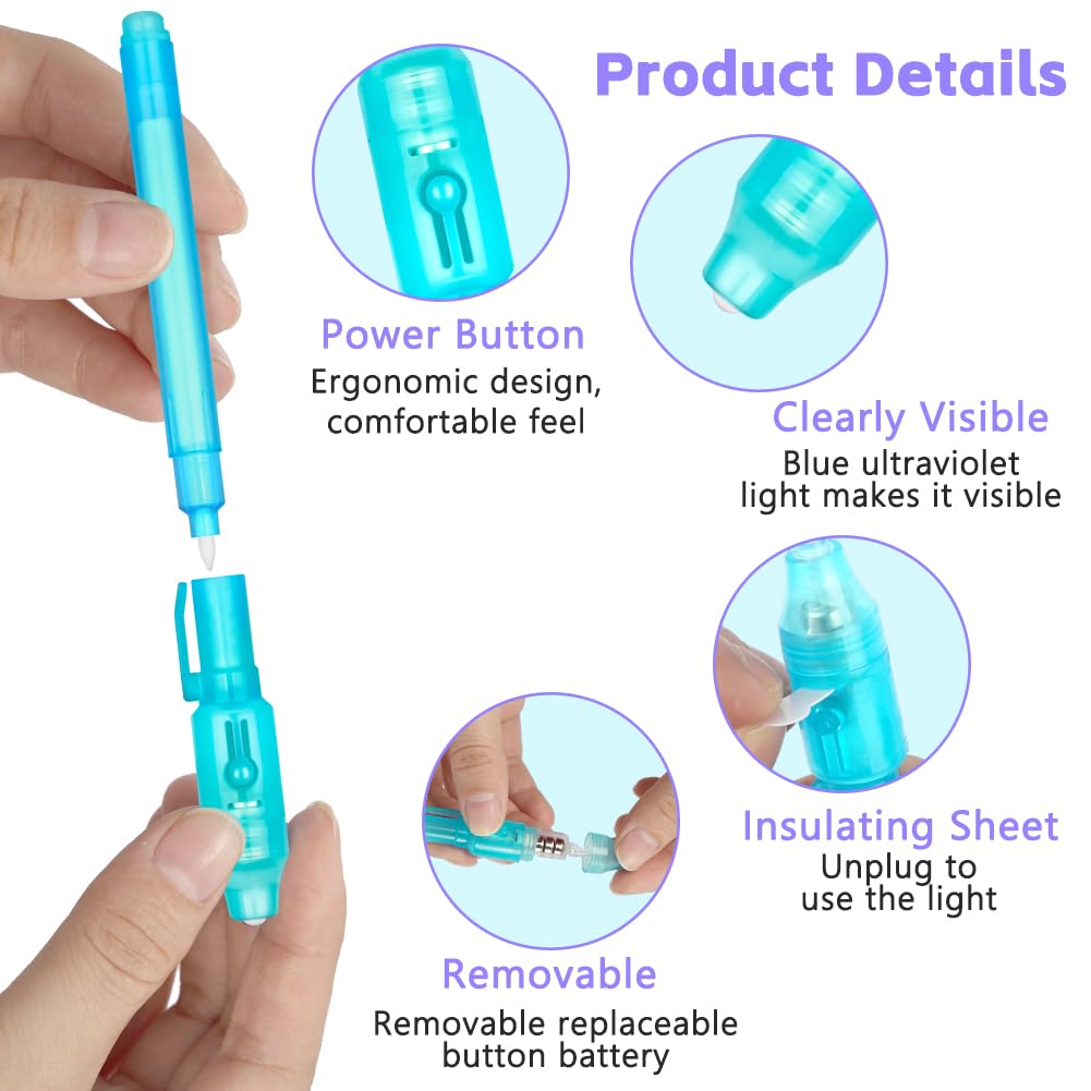 - Perfect Gift Each set of UV spy pens and notepads comes in a zippered bag, making them perfect as party gifts for children’s birthdays, pinata fillings, school rewards, Christmas parties, advent calendars, and other events. They are the perfect party games for kids because they’re so much fun!