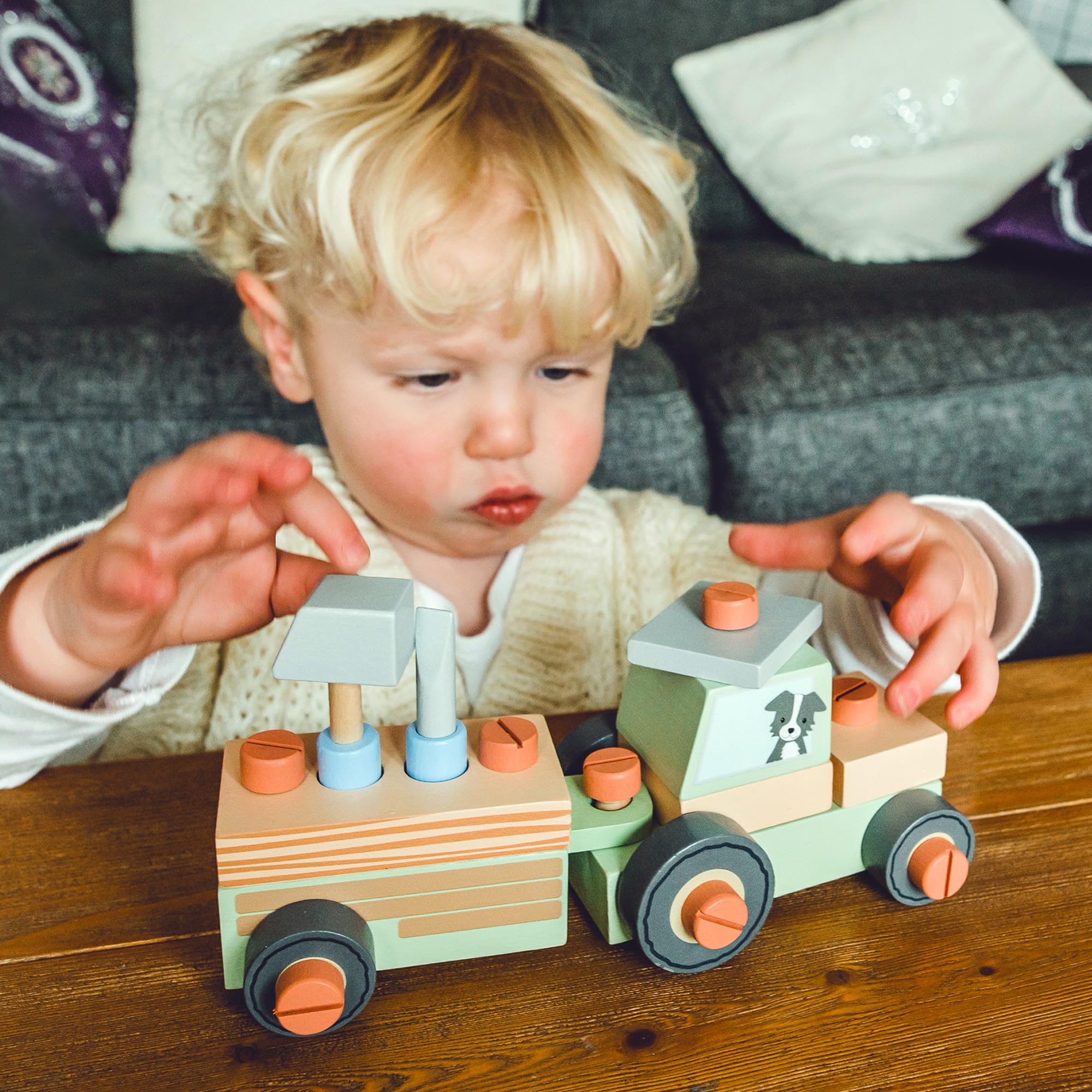 - DEVELOP KEY MOTOR SKILLS – A wooden tractor toy that you can push and pull along, but also build to provide your child with different ways to play, use it as a tractor toy or as a building farm toy. This build your own car tractor toy has screws located on the wheels, trailer, roof and bonnet to encourage motor and building skills development