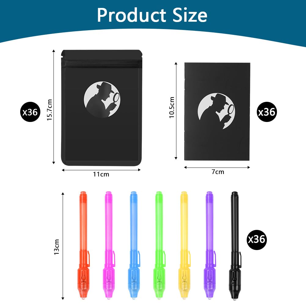 36-pack (12 small notebooks + 12 invisible pens + 12 pearlescent bags)