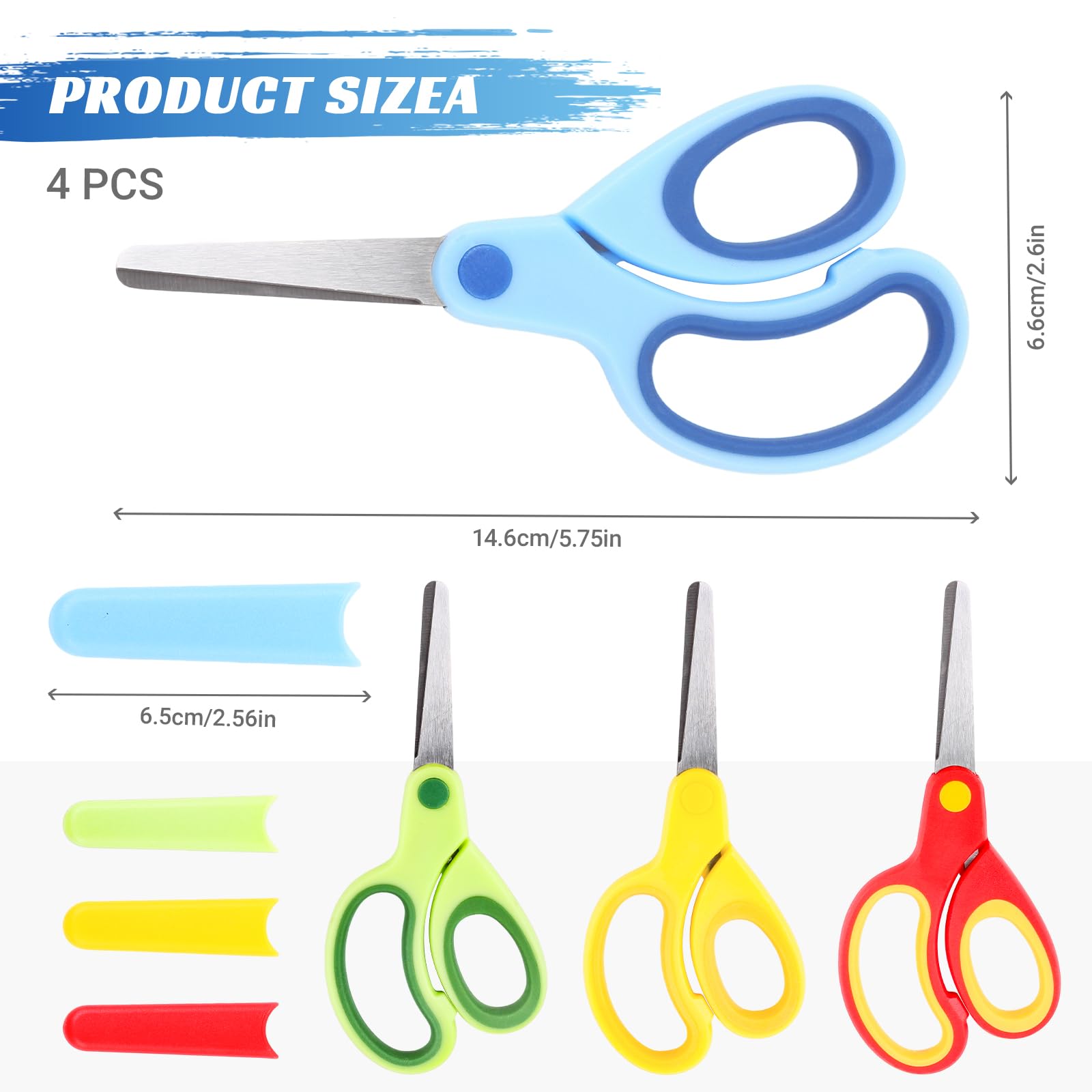 - Four colours available: our product includes 4 pairs of children’s scissors in red, yellow, blue and green, so several people can use them at the same time. It is suitable for DIY, school group activities or family storage and can be easily adapted to different requirements.