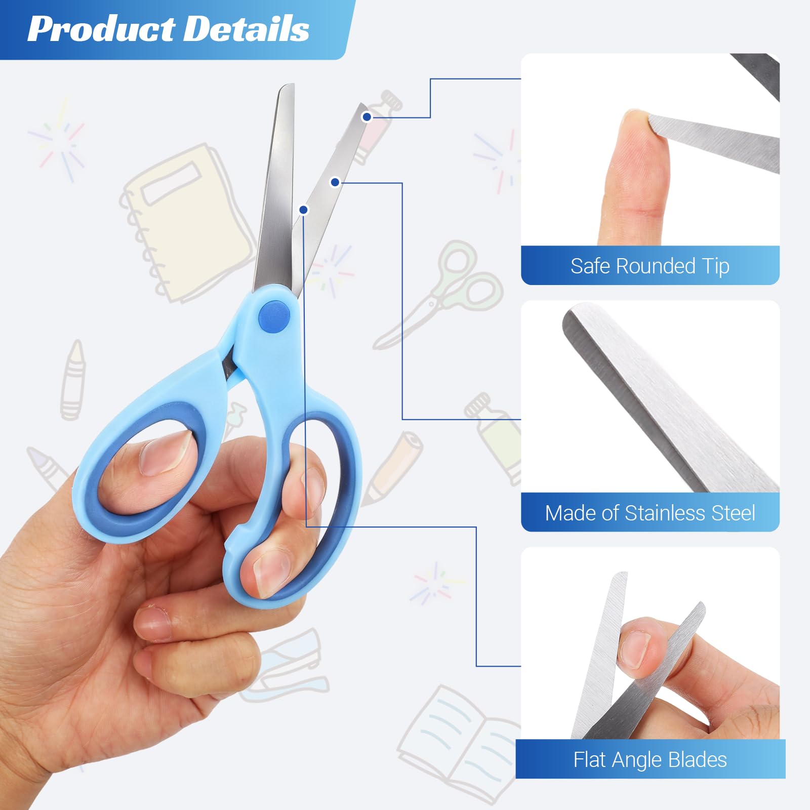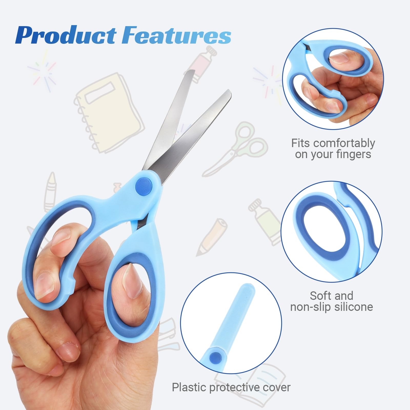 - ERGONOMIC DESIGN:These kids scissors are suitable for both left and right handed users. The handles are polished smoothly, conform to the contours of the hand and feature non-slip TPR soft rubber patterns, so they are comfortable to use even during prolonged cutting of paper or fabric. Craft lovers can concentrate on their creations without fatigue.
