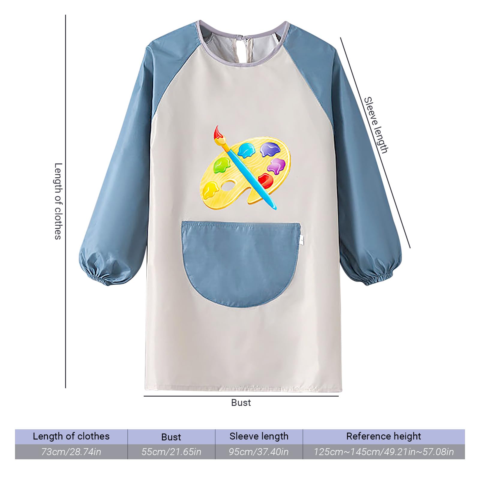 - Exquisite and ApplicableSuitable for children aged 6-12 years, Specially designed for children around 130-145CM tall, our long-sleeved apron fits comfortably, with a chest width of 95cm and a length of 73cm.