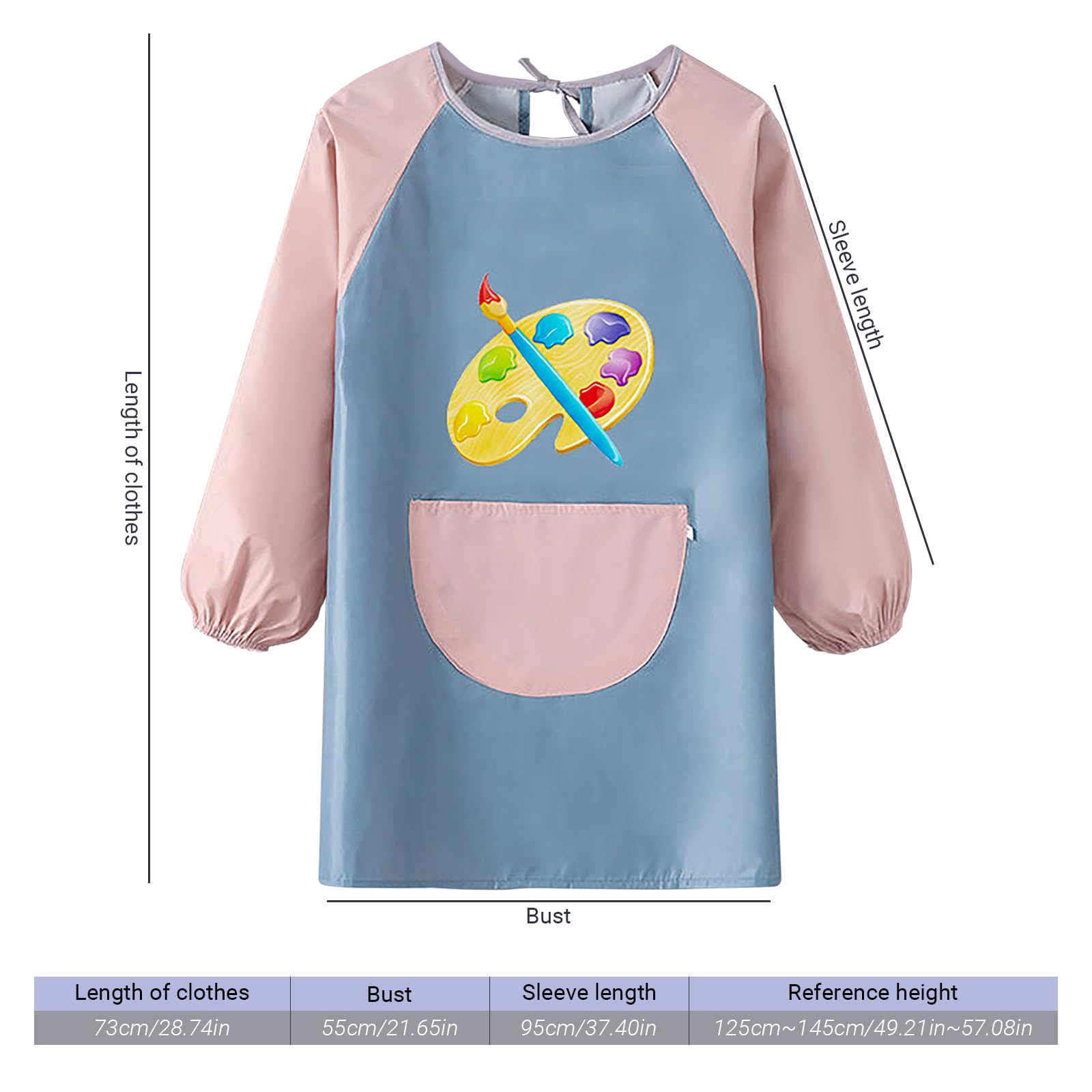 - Exquisite and ApplicableSuitable for children aged 6-12 years, Specially designed for children around 130-145CM tall, our long-sleeved apron fits comfortably, with a chest width of 95cm and a length of 73cm.